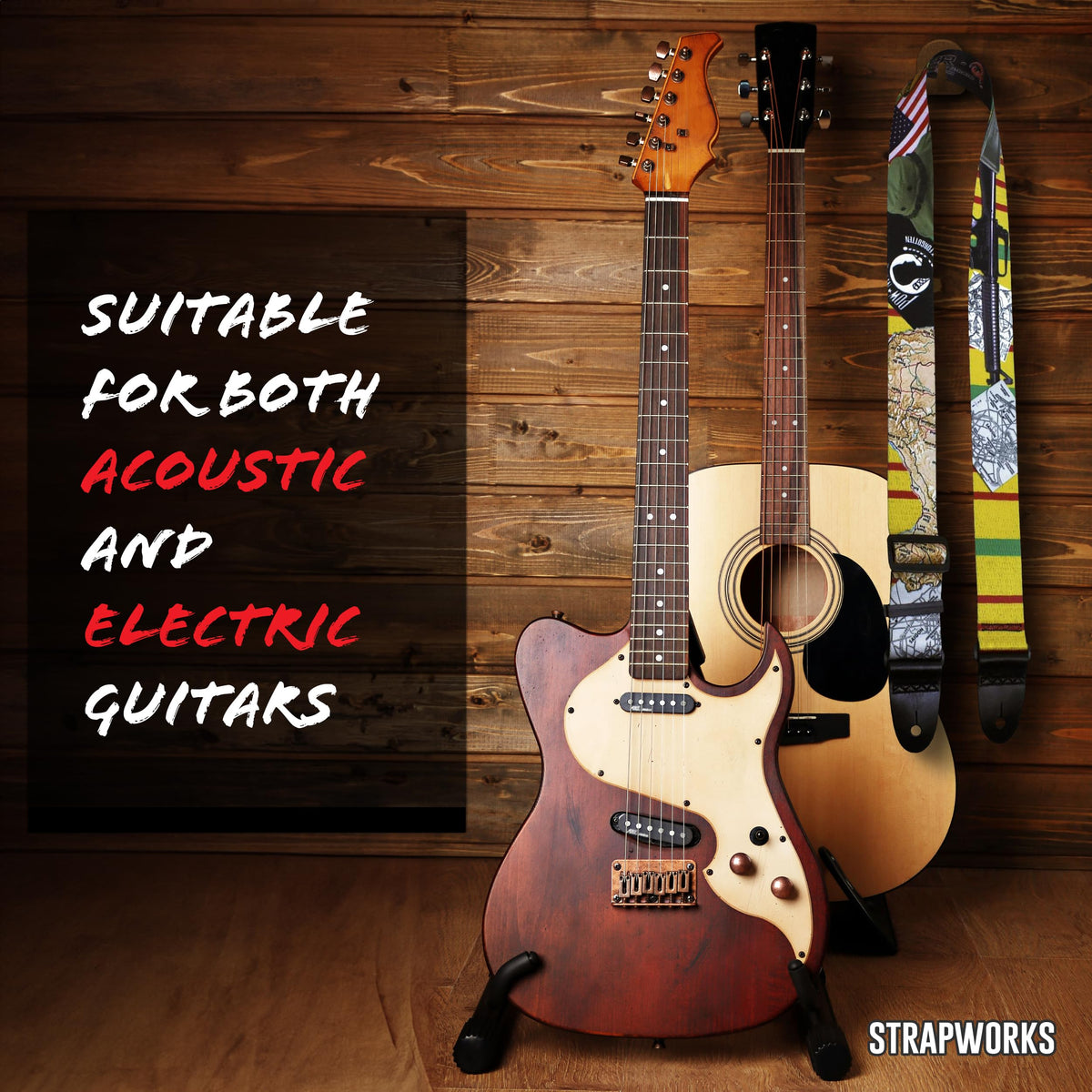 Print Guitar Strap -These Fun, Stylish Guitar Straps Are A Favorite Among Electric And Acoustic Guitar Players.They Are Great For Banjos Too!With Many Styles, Designs And Colors To Choose From, There Is A Guitar Strap For Every Musicians Taste.Each Guitar Strap Measures 2 Inches Wide (Great For Shoulder Comfort) And 5 Feet Long.The Strap Is Easily Adjustable, So You Wont Have Any Issue Finding The Perfect Length. Superior Design - The Guitar Strap Is Made From Picture Quality Polyester That Wont Stretch, Bleed, Or Fade.The Elegant Genuine Black Leather Ends Are Suitable For Embossing Or Stamping.