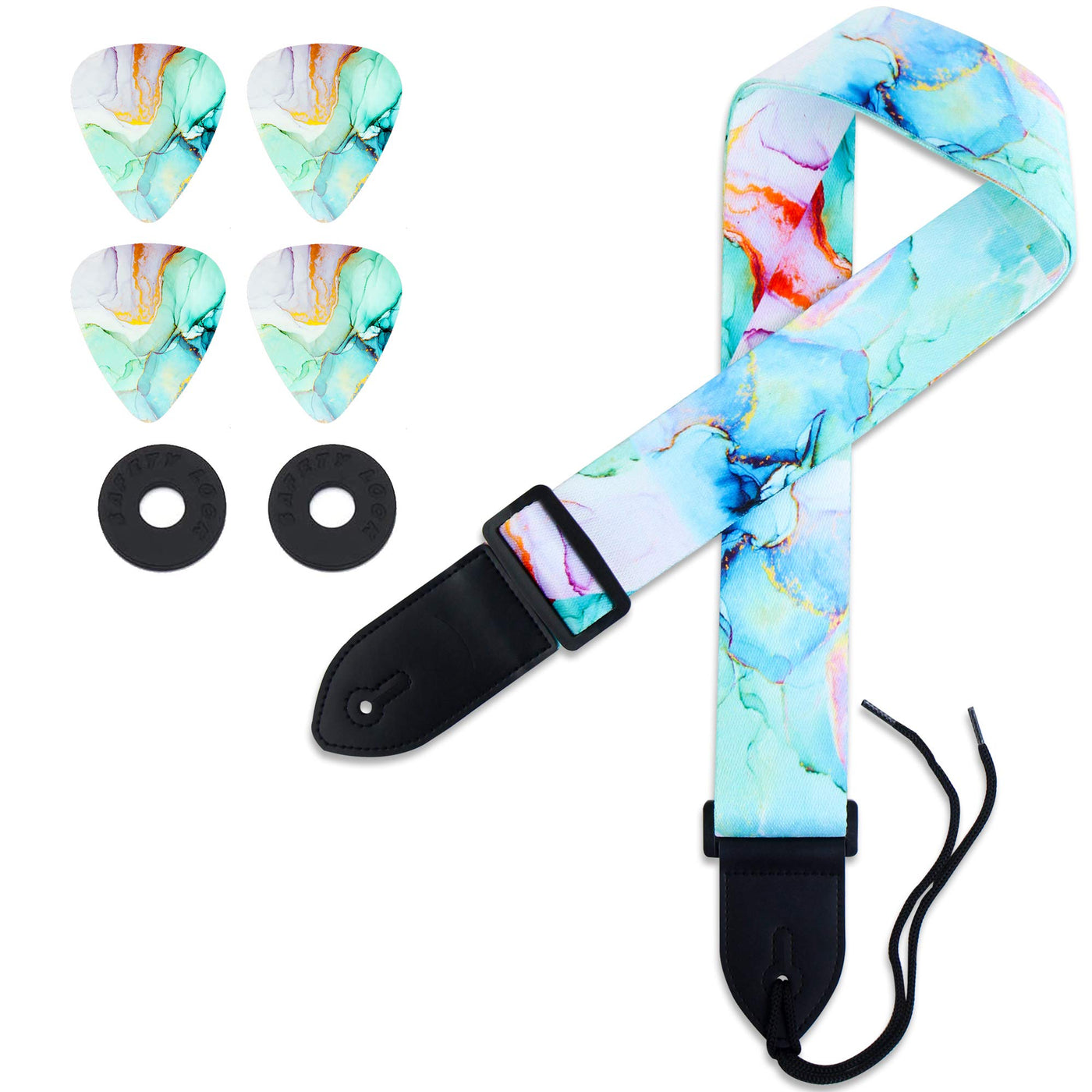 Afford Yourself The Wonderful Guitar Strap You Deserve - Starting Today Do You Enjoy Playing Your Favorite Songs On The Guitar Arent You Sick And Tired, However, Of Plain And Boring-Looking Guitar Accessories That Are Out Of Touch With Your Artistic Taste Wouldnt You Prefer Something With More Soul Well, Youre In Luck This Amazing Guitar Strap May Just Prove To Be All You Wanted And More The Softness And Comfort Of Polyester Strap Make It Beneficial From The Moment You Buy Them Polyester Straps Are Considered By Many Guitar Players To Be The Best Choice As They Help Evenly Distribute Guitar Weight And Dramatically Reduce Back Pressure, Providing Maximum Comfort Straight Out Of The Box Whats More, Its Designed To Be Compatible With All Kinds Of Guitars Acoustic Ones, Electric Ones, Even Bass Guitars Everything A Guitarist Would Ever Need, Conveniently Packed Into A Single Bundle Weve Made Sure To Make Our Guitar Straps Adjustable And Practical Enough To Fit Every Guitarists Needs, No Matter His Physique, Guitar Type, Or Playing Style Whats More, Along With Your Brand New Strap Youll Receive 2 Strap Locks, As Well As 4 Matching Picks - For Absolutely No Additional Charge So, What Are You Still Waiting For Order Your Own Premium Guitar Strap Set Today