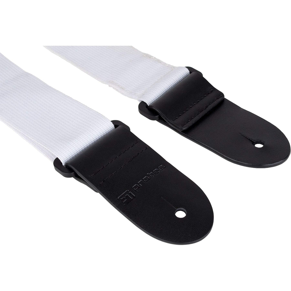 Protec Guitar Strap Featuring Thick Leather Ends And Pick Pocket, White