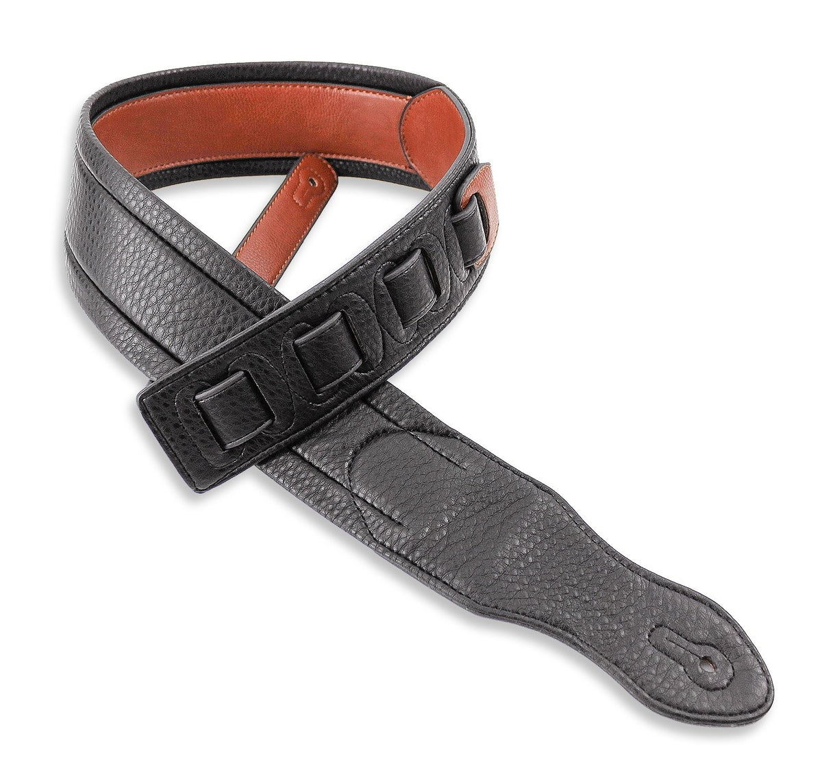 Premium Quality Handmade Strap For Guitar Or Bass | Rich Chestnut Brown Single Piece Top Welt | Ultra Comfortable Padded Black Glove Leather Back | Double Reinforced End Caps | 2.75 Wide And Adjustable From 47-52