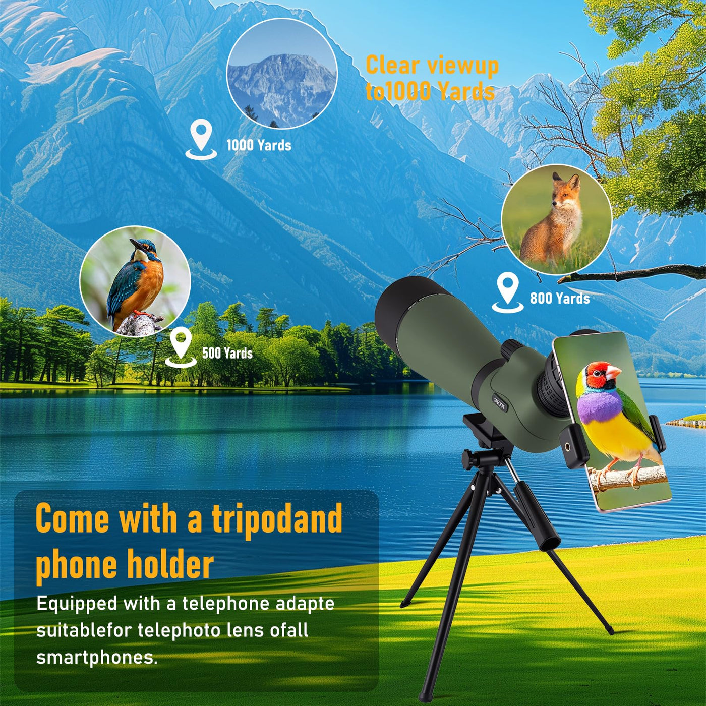 Spotting Scope 25-75X80 Hd With Tripod Carrying Pouch And Quick Cell Phone Holder, Clear Image With Bak4 Prism Spotting Scopes F