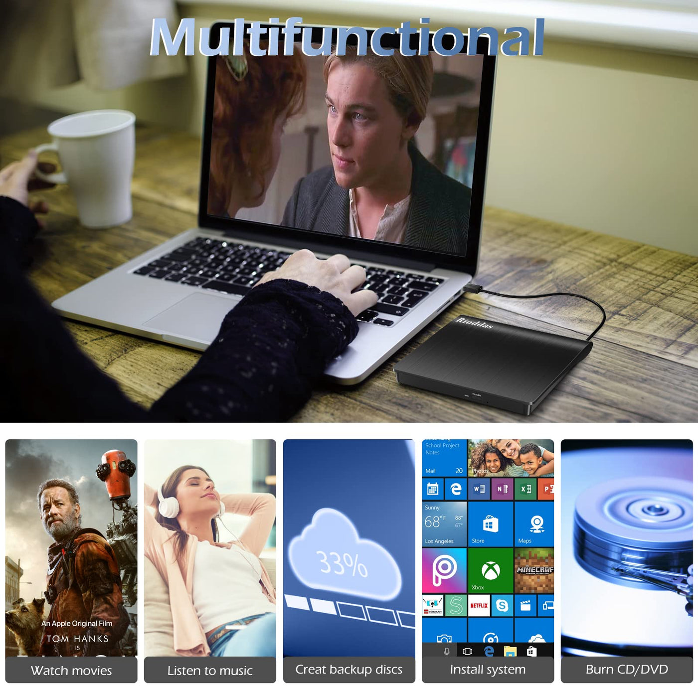 External Cd/Dvd Drive For Laptop Usb 3.0 Portable Cd Dvd +/ Rw Burner Dvd/Cd Player Or Rom Reader Rewriter Writer Disk Drive Com