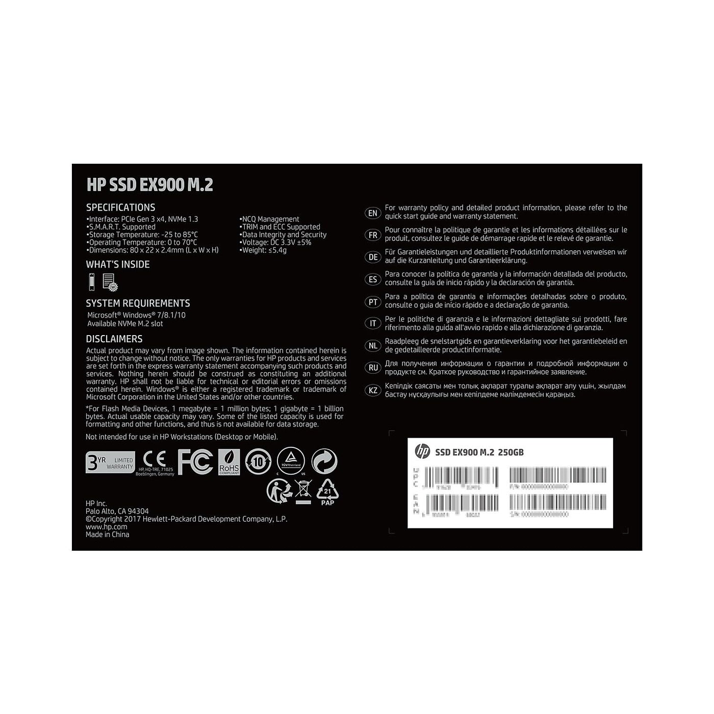 Ultra-High Performance Without Latency The Read And Write Speed Of Ex900 Reach 2150Mb / S And 1815Mb / S Respectively, Which Ensures Faster Speed And Higher Efficiency. Ex900 Fully Accelerates The Pc Systems, Enabling Pc Boot, Program Startup And Files Loading In Seconds. Hp Pcie Controller, Better Performance & Stability Hp Ex900 M. 2 Features An Hp Controller With 4 Flash Memory Channels That Support Pcie3X4 And Nvme 1. 3 Standard. Maximize Gaming Notebook And High-End Computer & Apos; S Performance, And Increase Responsiveness. 3D Nand Flash, Break Through Space Limitation Hp Ex900 M. 2 Features An Hp Controller With 4 Flash Memory Channels That Support Pcie3X4 And Nvme 1. 3 Standard. Maximize Gaming Notebook And High-End Computer & Apos; S Performance, And Increase Responsiveness. Quite Capable Of Boosting High-Performance Pcc With A Size Of 22X80X2. 4Mm (2280), Hp Ex900 M. 2 Is A New Storage Solution With Ultra-High Performance. Compatible With New Generation Motherboard Architecture, Ex900 Is Applicable To High-End Motherboards, Notebooks And Desktops With Pcie M. 2 Interface. Ex900 Also Supports Hp Pc Dst Self-Test, Ensuring The Durability In Use. With The Performance Improved And Capacity Upgraded, The Efficiency Of Operation And Gameplay Is Also Raised. High Stability And Reliability To Improve The Efficiency The Choice For High Efficiency The Stable And Efficient Storage Performance Of Ex900 Helps You To Operate Various Related Software And Work Efficiently With Half Effort. Enjoy The Speed Unleashed Ex900 Makes The Slow Loading And Latency Of Computer Game To End And Enables You To Enjoy More Wonderful Gaming Time. Capacityc250Gb Modelc2Yy43Aaabc Interface / Protocol Hp Ssd Ex900 M. 2 2280Cpcie Gen 3(8Gb / S) X 4, Nvme 1. 3 Performance4Kb Qd32) C Max. Sequential Read (Mb / S)C2100 Max. Sequential Write (Mb / S)C1300 Max. . . .