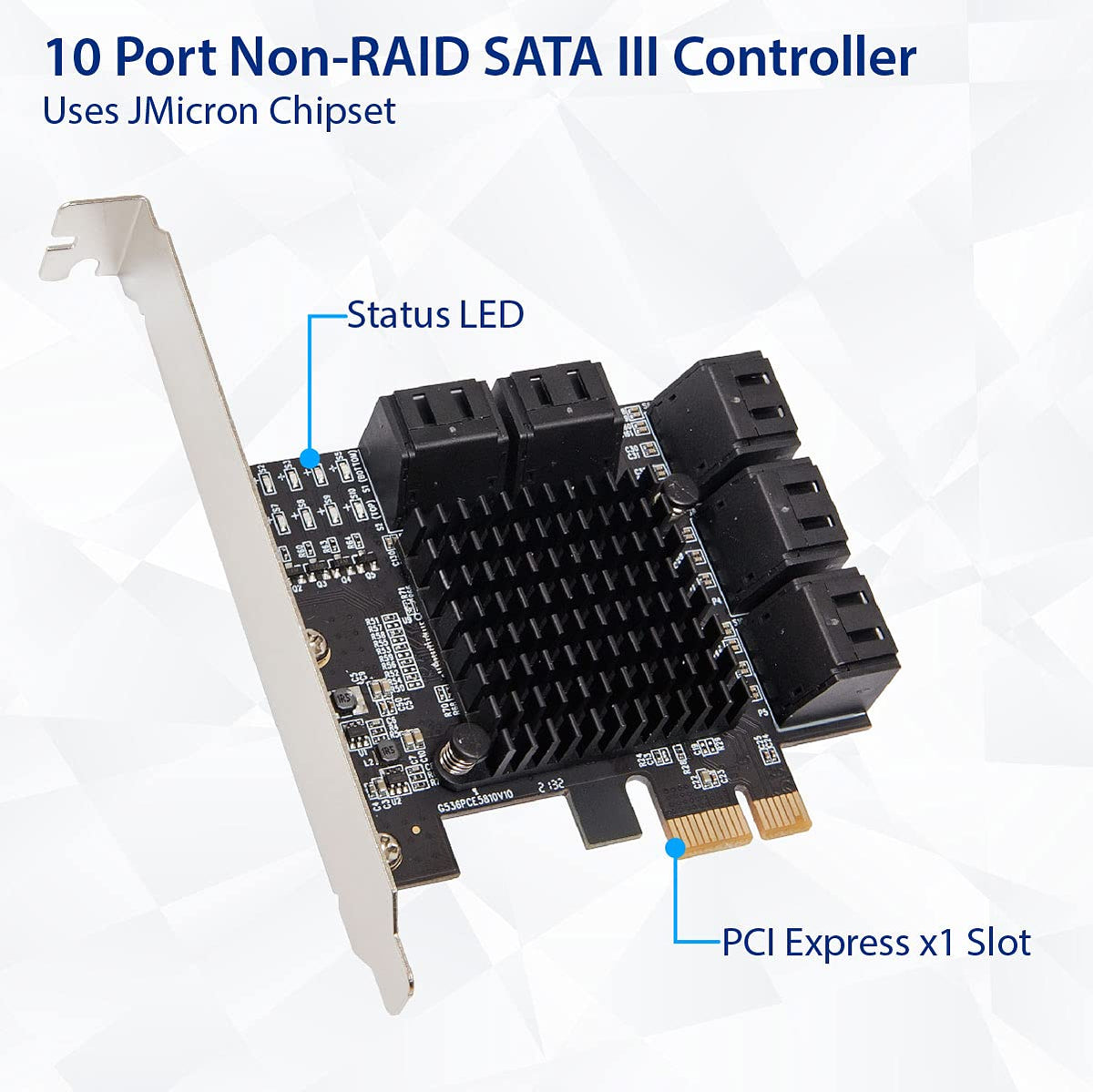 Io Crest 10 Port Sata Iii To Pcie 3.0 X1 Non Raid Expansion Card Jmb582 Low Profile Bracket, (Sy Pex40167)