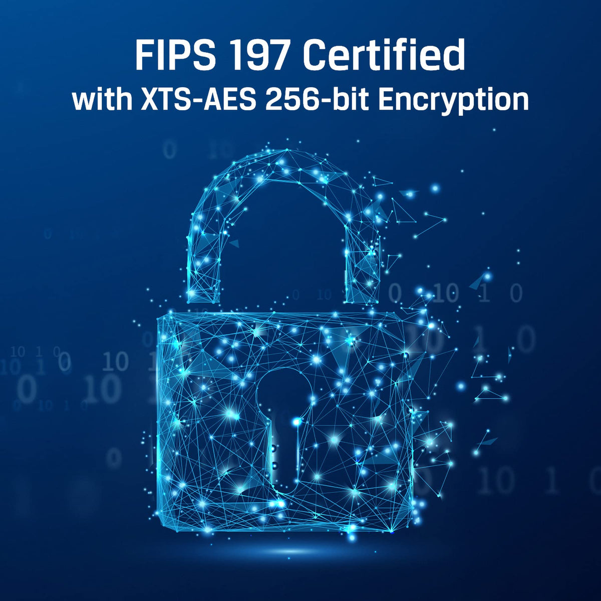 Q: What makes the Kingston IronKey Vault Privacy 80 SSD secure?A: The Kingston IronKey Vault Privacy 80 SSD features FIPS 197 certification and utilizes XTS-AES 256-bit encryption, ensuring robust data protection. It includes a secure microprocessor that is Common Criteria EAL5+ certified, which safeguards against unauthorized access and potential data breaches.