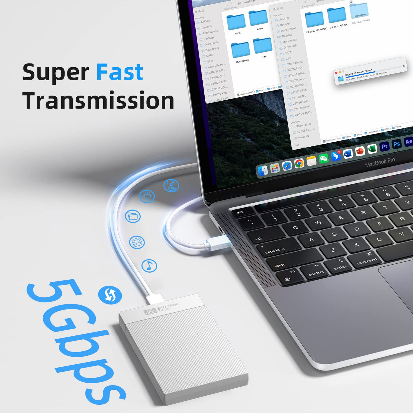San Zang Master 2.5 Inch Hard Drive Enclosure, 5Gbps Usb 3.0 To Sata Iii 5Gbps High-Speed Transmission For 7-9.5Mm Hdd Ssd Enclosure, Usb-B To Usb-A, Support Uasp Trim For Windows Ps4 Xbox