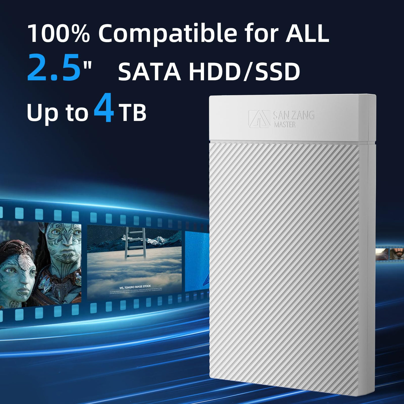 San Zang Master 2.5 Inch Hard Drive Enclosure, 5Gbps Usb 3.0 To Sata Iii 5Gbps High Speed Transmission For 7 9.5Mm Hdd Ssd Enclo