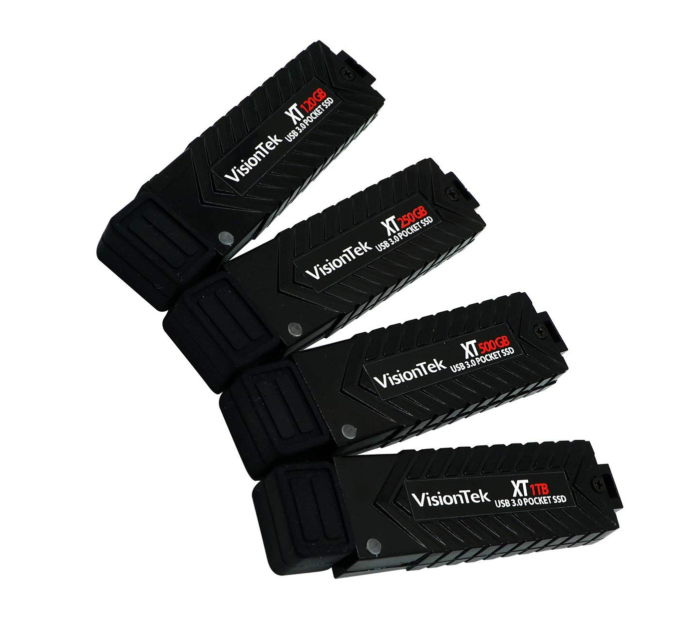 The Pocket Ssd Line Is Ideal For Creative Professionals. The Xt 500 Gb Pocket Ssd Powers Users, And Performance Enthusiasts Seeking Ultra-Fast Media And Large File Transfers. Available In Density Storage Capacities Of 120 Gigabytes (Gb), 250 Gb, 500 Gb, And 1 Terabyte (Tb), The Xt Usb Pocket Ssd Can Be Plugged Into Any Computer'S Usb 3. 0 Port To Save Or Share Work Files, Movies, Images, Music Libraries, And More. The New Xt Version Is Similar In Size To A Standard Usb Thumb Drive, But That'S Where The Comparison Ends. The Aircraft-Grade Aluminum Housing Contains A Fully Functional Solid-State Drive With A Multi-Chip Design, Utilizing High Endurance Tier1 3D Nand Powered By The Silicon Motion 2258Xt Controller. This Design Makes It Possible For File Transfers To And From The Visiontek At Usb 3. 0 Pocket Ssd To Be Done 5 Times Faster Than Standard Hdd External Hard Disk Drives.
