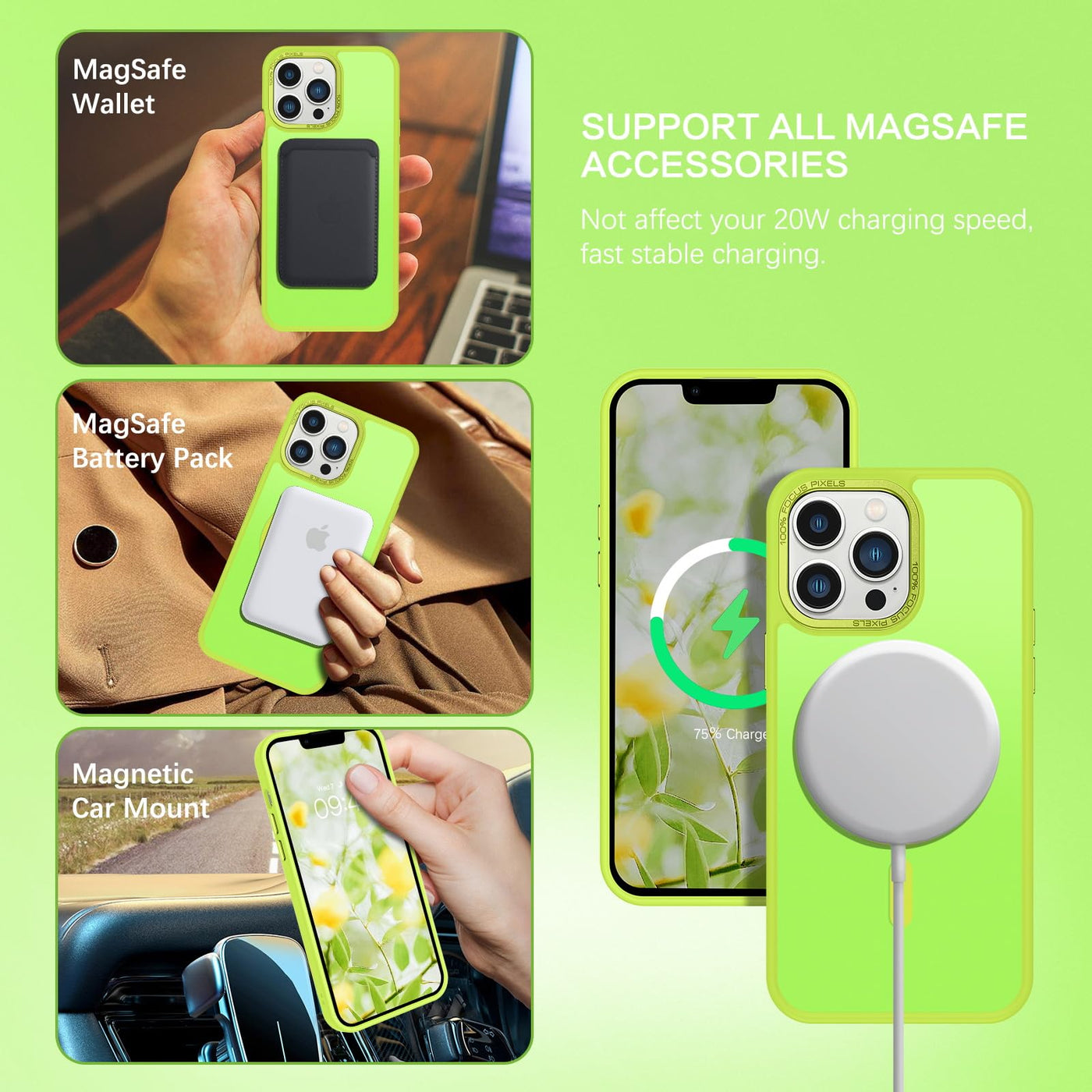 Q: Can I charge my iPhone 13 Pro wirelessly with this case on?A: Yes, the built-in magnet arrays make it compatible with MagSafe accessories, allowing for efficient wireless charging without needing to remove the case.