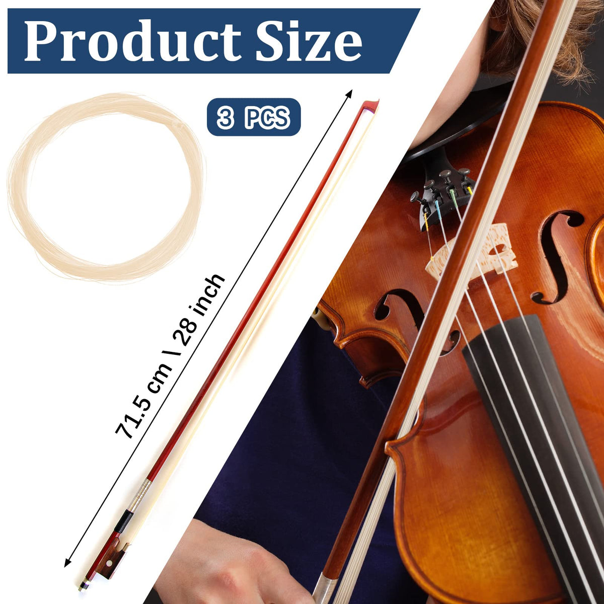 Features: The Mongolian Horse Hair Is Elastic And Reliable For Players To Use, Not Easy To Fray Or Out Of Shape, The Quality Product Will Not Cause Bad Effect To Your Instruments, Making The Tone More Gentle And Pure. The Violin Bow Rehair Tools Have Enough Quantity, Which Can Satisfy Peoples Replace Requirements. They Can Be Given As Gifts To Send Players Or Musical Instrument Lovers. Specifications: Material: Horsetail Color: As Shown In The Pictures Size: Length: 31.5 Inches Package Includes: 3 X Violin Bow Hair Replacement Kit Notes: Manual Measurement, Please Allow Slight Errors On Size. The Color May Exist A Slight Difference Due To Different Screen Displays.