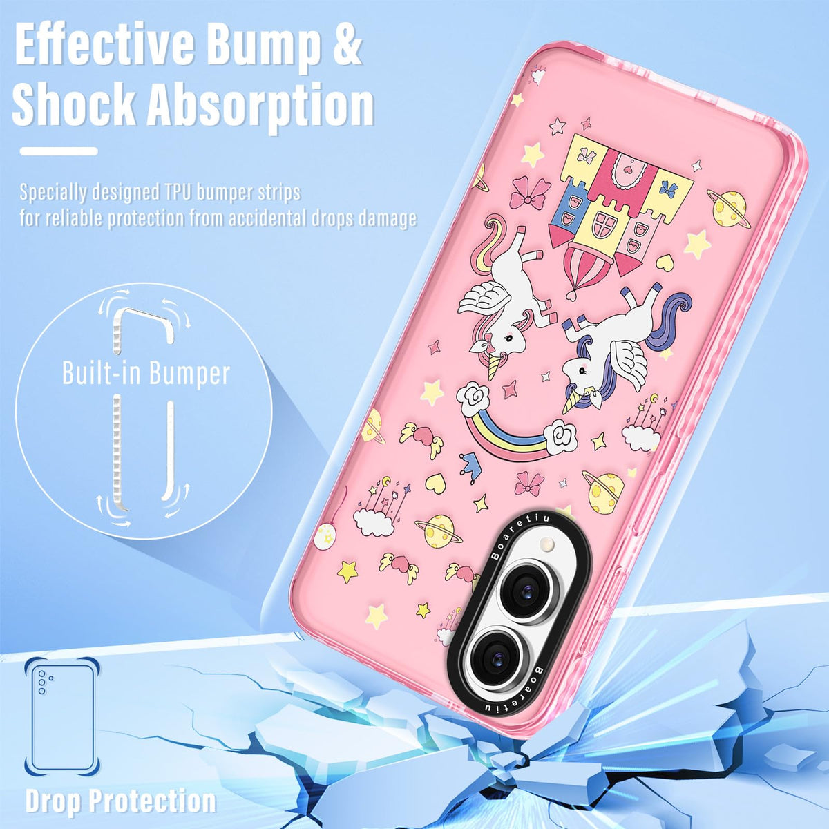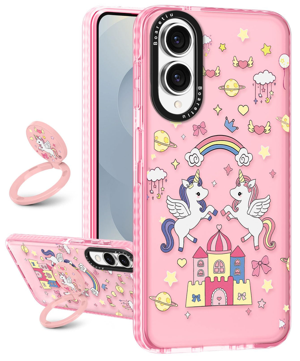 Boaretiu For Samsung Galaxy S25 Edge Case - With Stand Cute Kawaii Fashion 360 Rotate Ring Holder Kickstand Horse For Women Girl