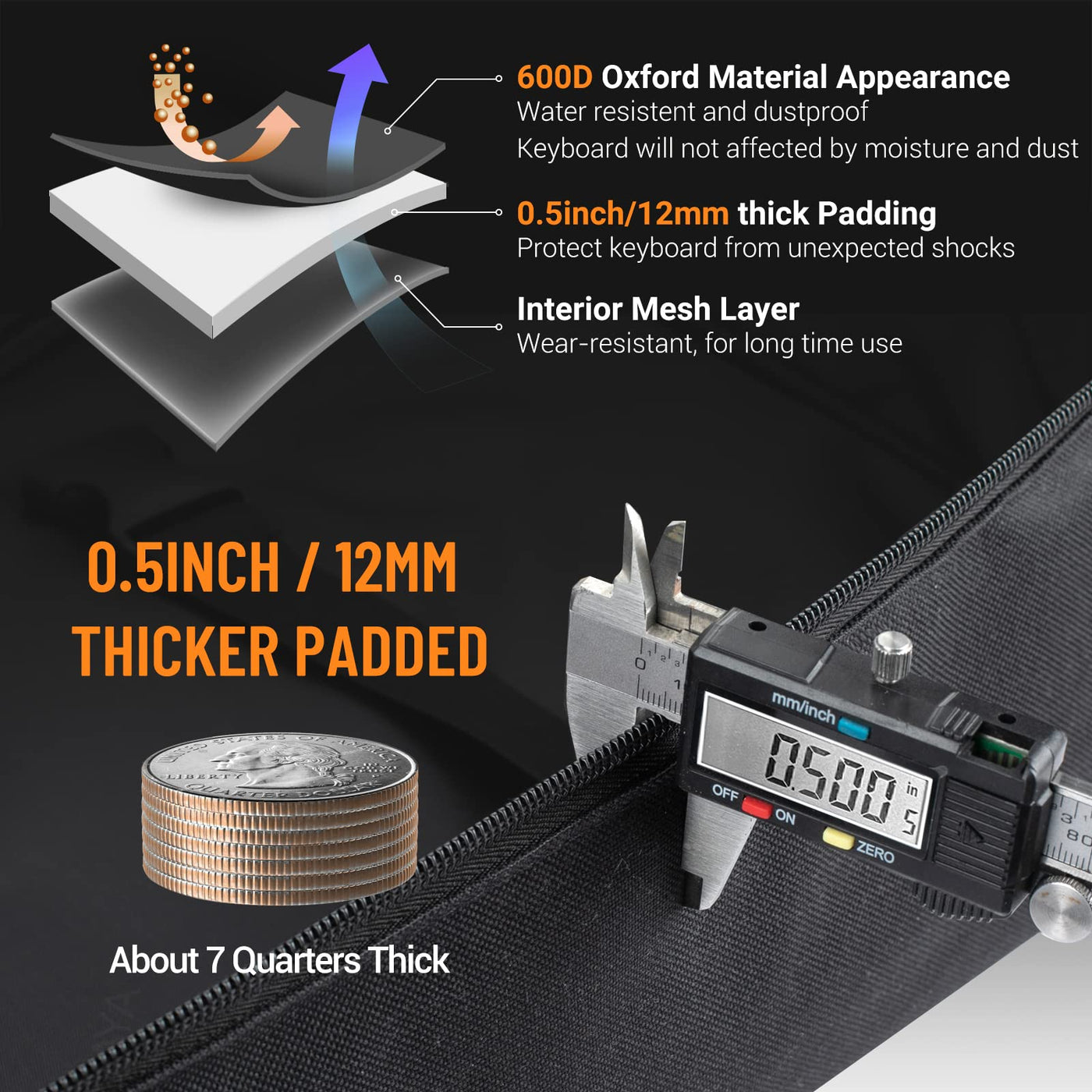 Cahaya 61 Key Keyboard Case Electric Keyboard Piano Gig Bag Portable 600D Oxford Cloth 12Mm/0.5Inch Thick Padded Case With Side