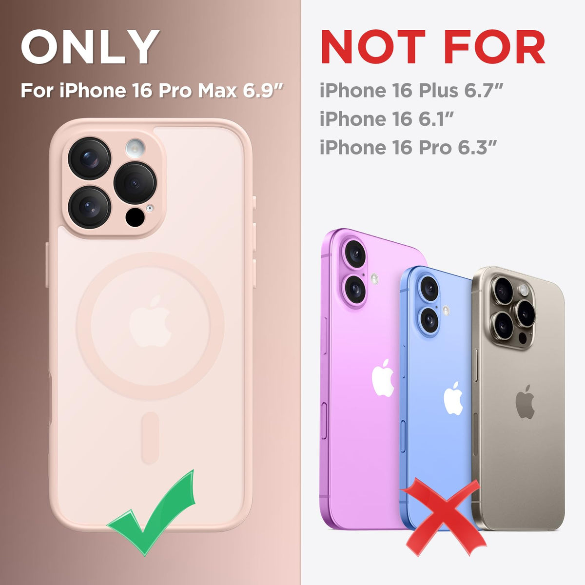 Specification: Compatible With: For Iphone 16 Pro Max 6.9 Inch(2024 Release) Material: Translucent Matte Back And Tpu Edges Form Factor: Basic Case Color: Cherry Pink Key Features: Only Designed For Iphone 16 Pro Max Compatible With Magsafe Accessories, Can Be Perfectly Aligned And Quickly Locked, Provides A More Powerful Magnetic Force Comes With 2 Pack Screen Lens Protectors And All-Inclusive Camera Protector 1.5 Mm Screen Edge And 1.0 Mm Camera Lens Lips Comfortable Grip And Better Anti-Slip Performance 14 Ft Military Drop Protection, Hard Bumper And 4 Corner Airbag&Nbsp; Precise Cutouts, Buttons And Mute Switch Work Flawlessly, Accessible Volume Control Whats In The Package:&Nbsp; &Nbsp; 1* 16 Pro Max Case 2*Screen Protectors Product Highlights: ?Super Magnetic Force?Compatible With Magsafe Accessories, Can Be Perfectly Aligned And Quickly Locked, Provides A More Powerful Magnetic Force, Can Achieve A Stronger Magnetic Lock, And Provide Faster And More Stable Charging. ?Screen &Amp; Lens Protection?Our Fits Magsafe Case For Phone 16 Pro Max Has 1.0Mm Camera Lips And 1.5Mm Screen Lips That Help Your Phone Avoid Rubbing Against Surfaces That Leave Permanent Scratches. ?Trusted Military-Grade Protection? For Iphone 16 Pro Max Phone Case Was Tested Over 2000+ Times,14Ft Drop Test, And 0% Damage! This Case Design With Hard Back Panel, A Flexible Tpu Bumper Of 4-Ply Cushioning Structure, And 360Shock-Absorbing Airbags, Which Can Effectively Disperse The Violent Impact When The Phone Falls And Collides. Keep Phone Safe And Sound.