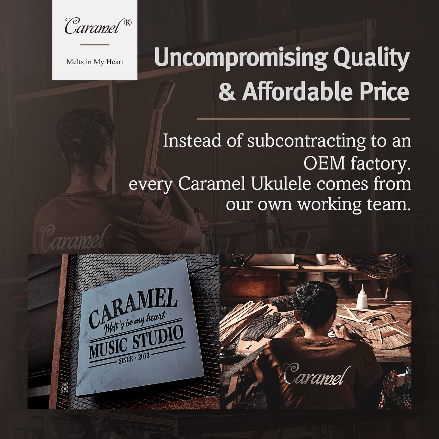 Caramel Cb207 Acacia Baritone Acoustic Electric Ukulele With Truss Rod With Additional Strings, Padded Gig Bag, Strap And Eq Cab