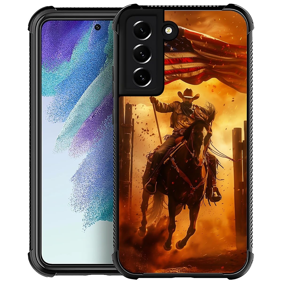 Carloca Compatible With Samsung Galaxy S21 Plus Case, Horse American Flag Cowboy Pattern For Girl Ultra Protection Shockproof So