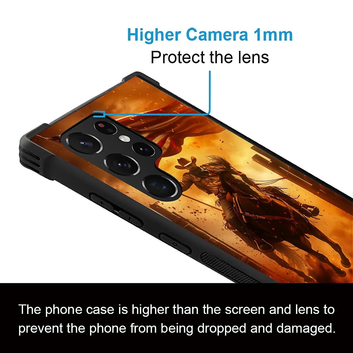 Carloca Compatible With Samsung Galaxy S23 Ultra Case, Horse American Flag Cowboy Pattern For Girl Ultra Protection Shockproof S
