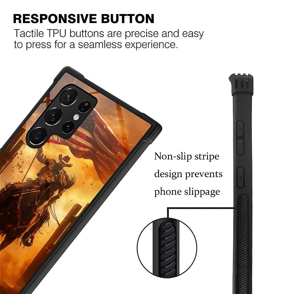 Horse American Flag Cowboy New Design Style Basic Case For Samsung Galaxy S23 Ultra And High Quality Pattern High Quality Made Of A Premium Tpu Material At Side , Polycarbonate Panel And A Scratch-Resistant Coating On The Back Cover, Anti-Bump, Back Four Sides Design Non-Slip, Ripple Around The Non-Slip Design, Dust-Proof Hd Is Gorgeous Pattern ,Case Compatible With Samsung Galaxy S23 Ultra And Compatible With Wireless Charging . Ultra-Thin & Slim Ensuring You Experience An Original Touch Of The Phone Dimensions But Access All Buttons And Ports What'S In Package Only 1* Case For New Samsung Galaxy S23 Ultra