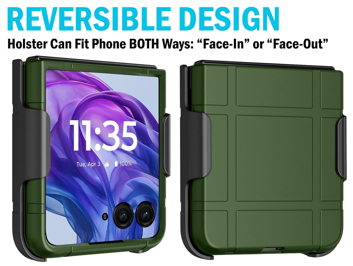 This Nakedcellphone Case + Holster Combination Is Made For Motorola Razr Plus 2024 Or Razr Plus 2025. Youll Receive The Slim Case And A Separate Belt Clip Holster/Holder That Is Custom Made To Fit The Case. The Holster Will Free Your Pockets From Excess Bulk And Keeps Your Device Protected/Concealed. Slim Case: The Case Is Composed Of Two Hard Shell Covers That Snap On The Front/Back Panels. Your Razr+ 2024/2025 Phone Remains Fully Functional In The Case With Cutouts To Access All Ports. You Can Still Flip The Phone Open And Closed As Normal. Elevated Lip Makes Your Exterior Screen Recessed For Protection. Ergonomically Designed With Notched Bezel Provides Better Feedback When You Swipe Up With Your Thumb. Grip Pattern: The Case Is Made Of Hard Polycarbonate With Matte Finish (No More Messy Fingerprints). Case Also Has Engraved Grid Pattern That Looks Professional And Provides Enhanced Tactile Grip.Like A Glove: Slim Form-Fit Design Snaps On The Phone For Quick And Easy Install. Optional Adhesive Strips Provide Extra Stability.Belt Clip: Holster Is Made To Fit The Phone With Case. Attach The Holster To Your Side And Slide In The Phone. The Interior Is Lined With Soft, Nonabrasive Micro-Fiber Material. The Holster Fits The Collapsed Phone So Your Device Is Concealed, Protected And Secure. Belt Clip Can Turn/Lock In 13 Different Positions And Has A Slim Profile So It Will Not Extend Far From Your Waist And Bump Into Things. Reversible: The Holster Can Fit The Phone Both Ways. Holds Phone Face-Out For Viewing. Insert Phone Face-Inward So Your Screen Is Concealed And Protected.Kickstand: There Is A Hinge On The Inside Of The Belt Clip So You Can Prop Open And Use The Holster As A Stand. This Kickstand Is Handy For Positioning The Clip On Your Table/Desk.Close Range Holder: The Holster Is A Holder For The Phone So You Can Keep It Secure And Accessible At Your Side. Remove Phone From