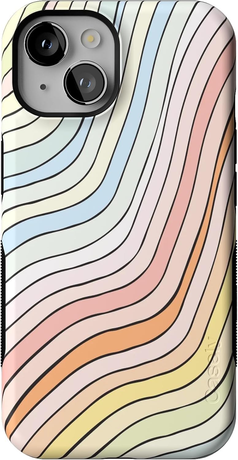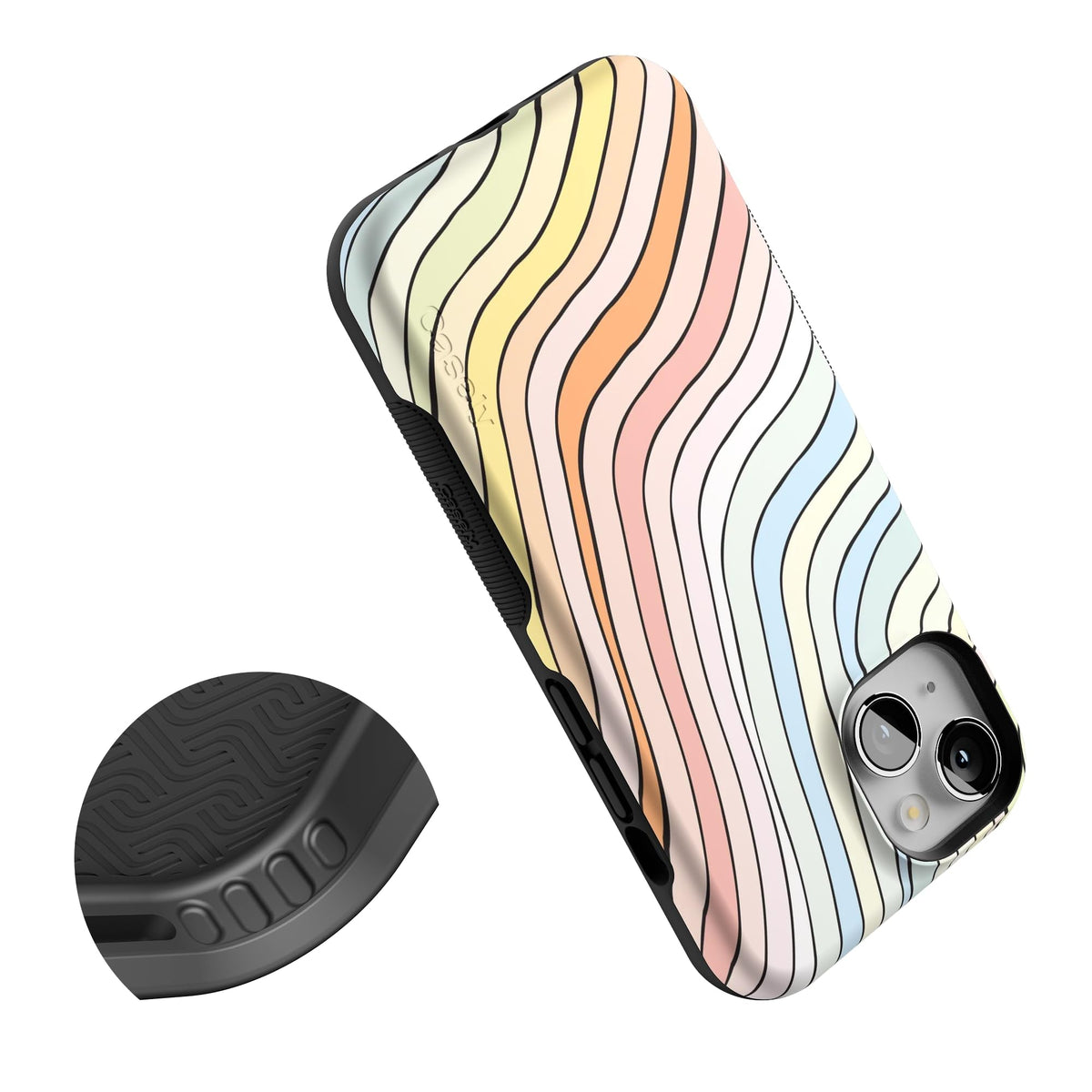 Casely Iphone 14 Case | Ride The Wave | Pastel Rainbow Lined | Compatible With Magsafe | Bold Protective Design