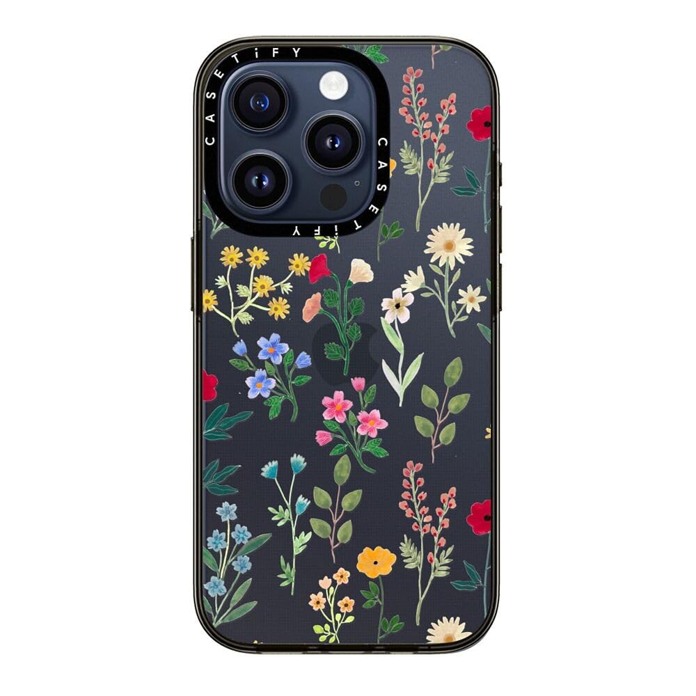 Casetify Compact Case For Iphone 15 Pro [2X Military Grade Drop Tested / 4Ft Drop Protection] Spring Botanicals 2 Clear Blac