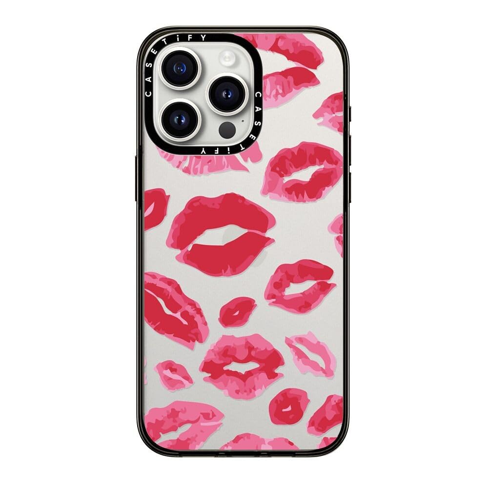 Casetify Compact Case For Iphone 15 Pro Max [2X Military Grade Drop Tested / 4Ft Drop Protection] Lipstick Kisses Clear Blac