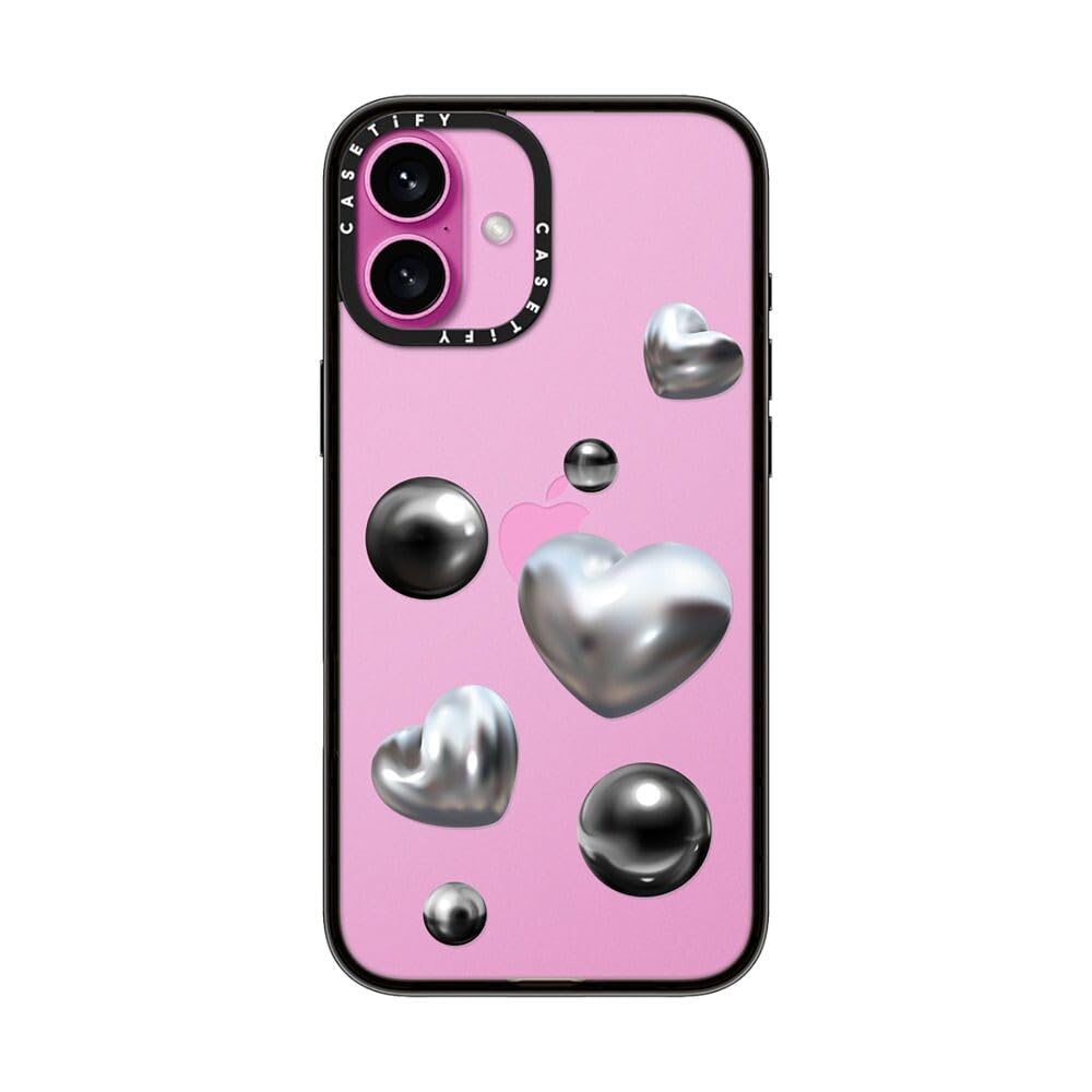 Casetify Compact Case For Iphone 16 Plus [Lightweight / 4 Ft. 2X Military Grade Drop Protection/Slim] Chrome Love Clear Blac