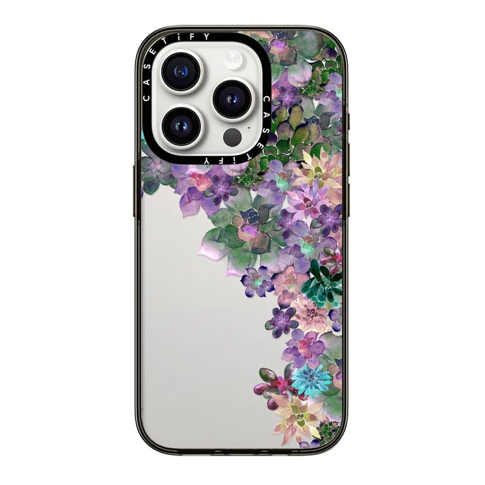 Casetify Compact Iphone 15 Pro Case [2X Military Grade Drop Tested / 4Ft Drop Protection] My Succulent Garden Clear Black