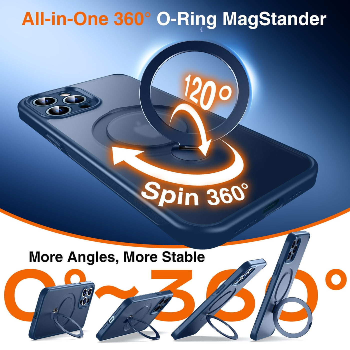 Chicfun 360 O-Ring Magstander For Iphone 12 Pro Max Case With Magnetic Kickstand Ring Holder [Compatible With Magsafe][360Rotate Stand][Military Shockproof] Iphone 12 Pro Max Phone Cover Blue