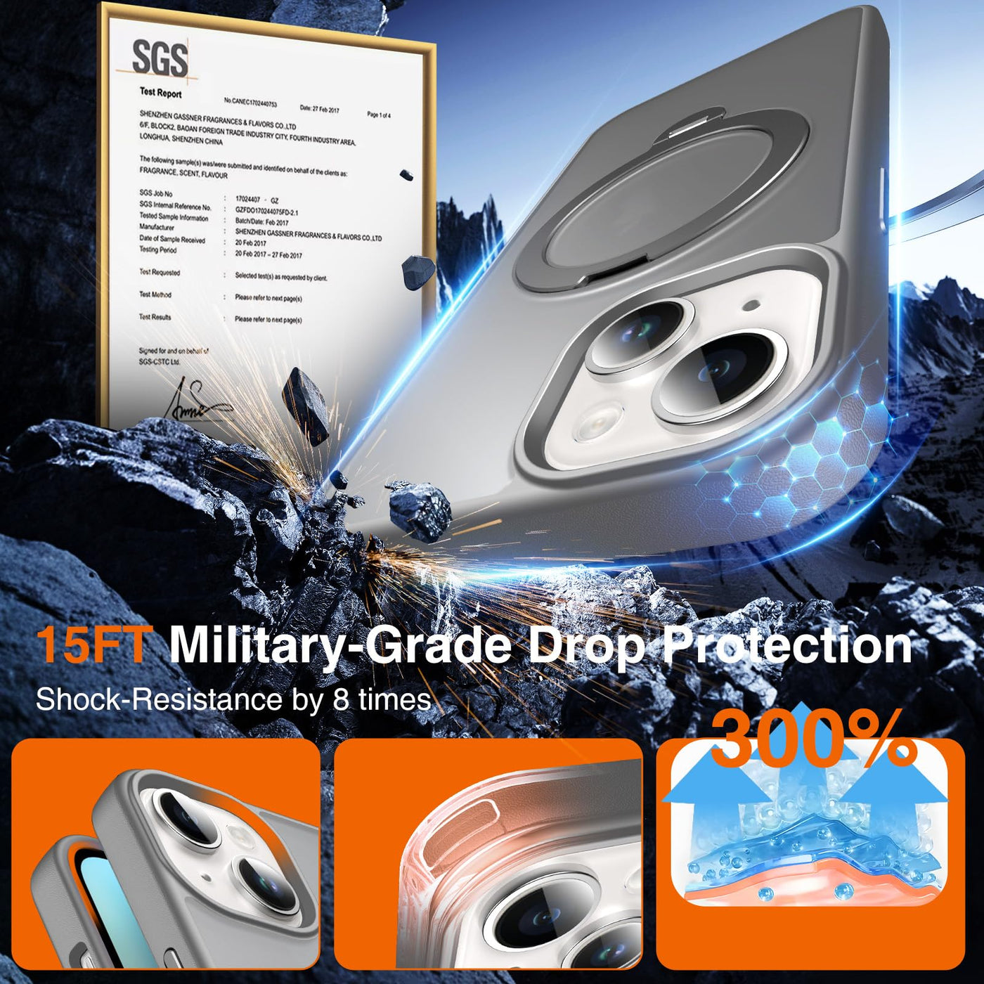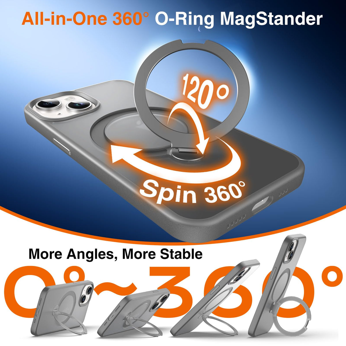 Chicfun 360 O-Ring Magstander For Iphone 13 Case, Iphone 14 Case With Magnetic Stand Ring Holder [Compatible With Magsafe][15Ft Military Shockproof] Kickstand Iphone 13/14 Phone Cover Matte Grey