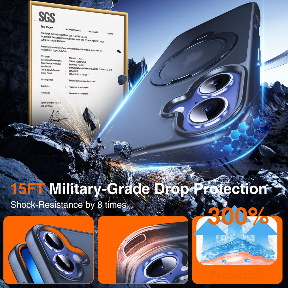 Chicfun 360 O-Ring Magstander For Iphone 16 Case With Magnetic Kickstand Ring Holder [Compatible With Magsafe][360Rotate Stand Ring][Military Shockproof] Magnet Iphone 16 Phone Cover Matte Blue