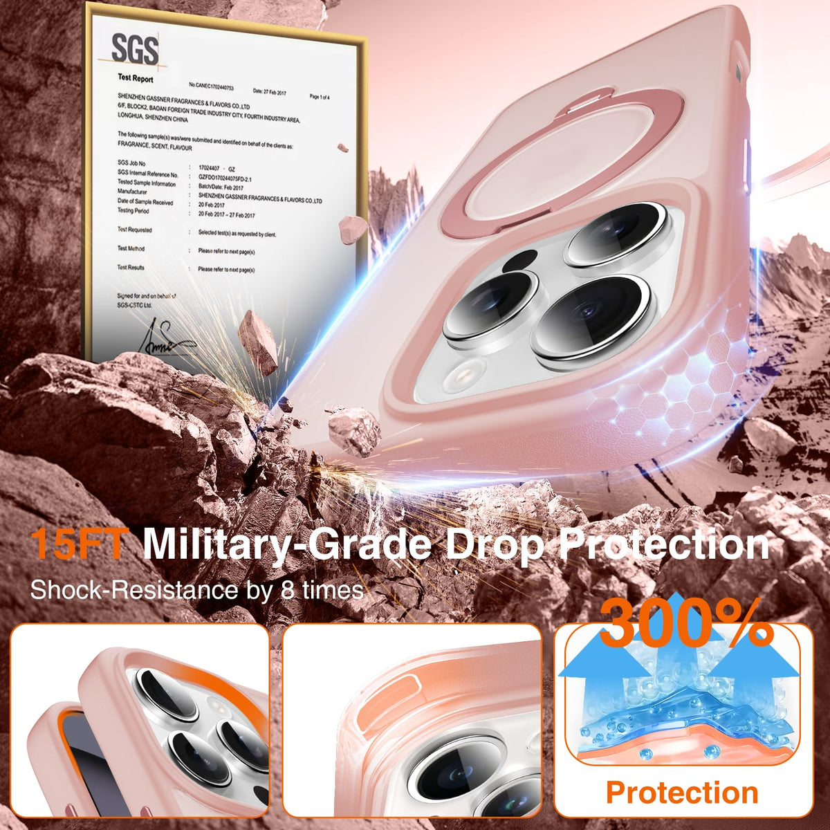 Chicfun 360 O-Ring Magstander For Iphone 16 Pro Case With Magnetic Kickstand Ring Holder [Compatible With Magsafe][360Rotate Stand Ring][Military Shockproof] Iphone 16 Pro Phone Cover Matte Pink