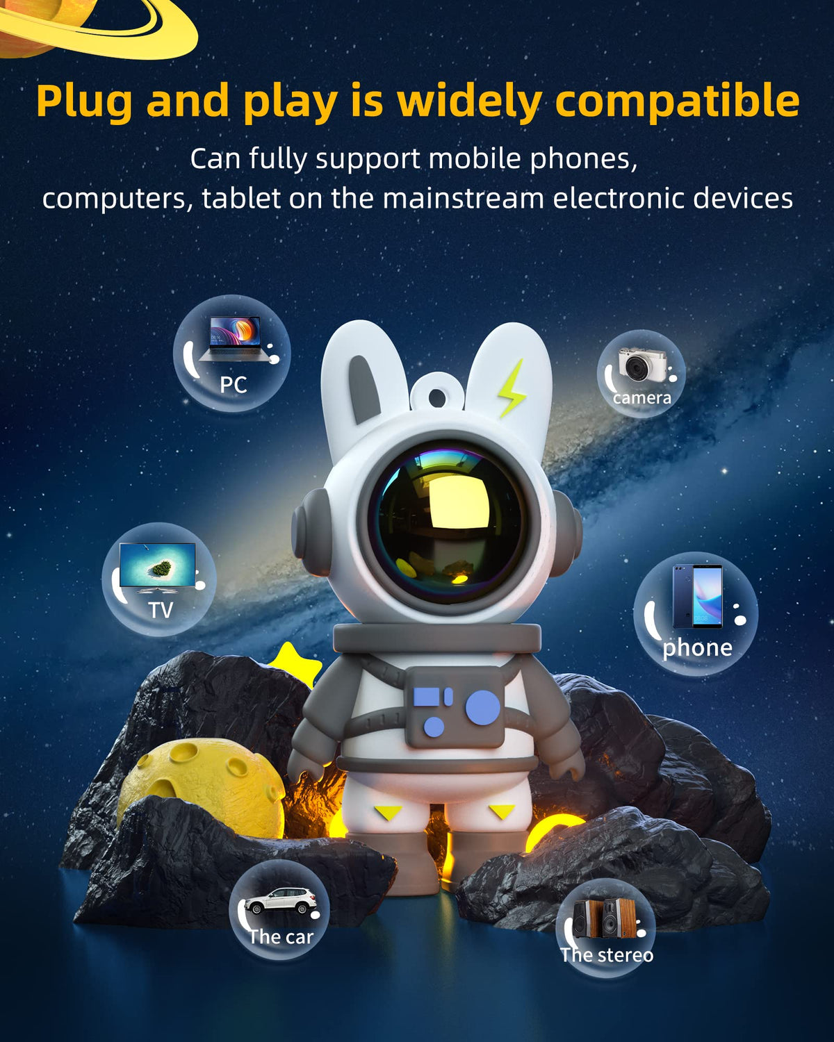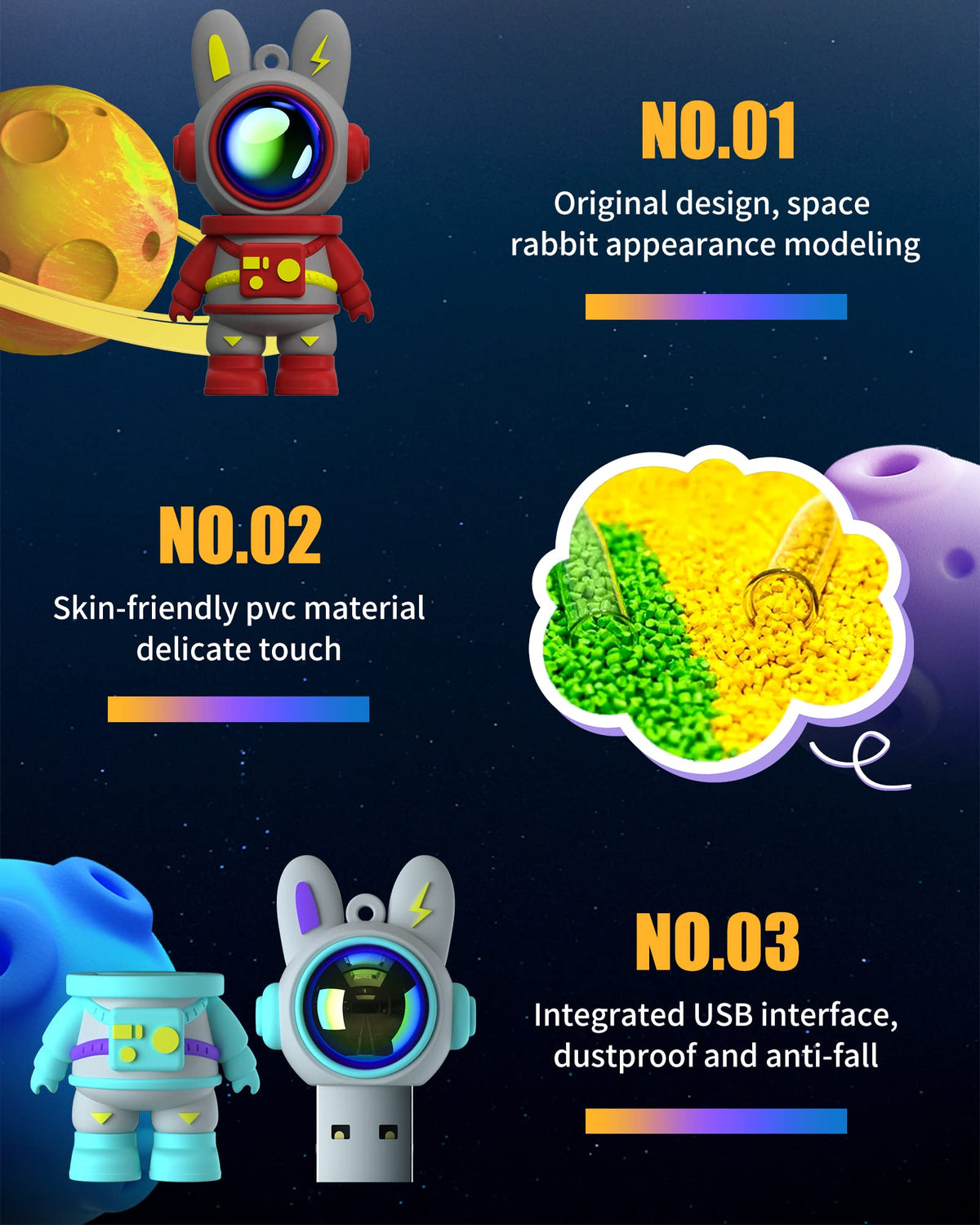 Q: Can I use this USB flash drive for everyday file storage and sharing?A: Absolutely! The Cute Space Rabbit USB Flash Drive is perfect for everyday file storage and sharing. Its plug-and-play functionality allows for easy use without the need for software installation.
