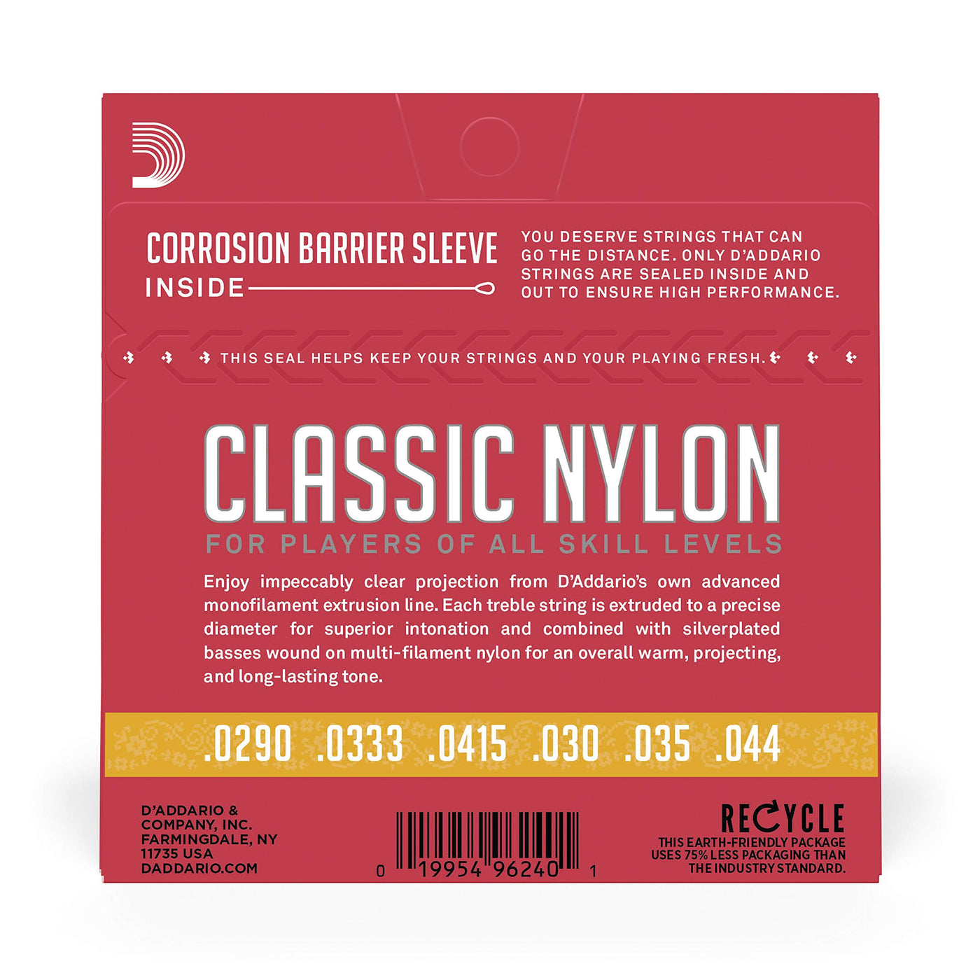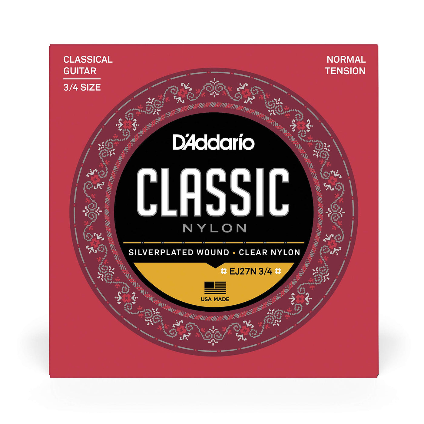 Product Descriptiondaddario Classic Nylon Student Strings Are Designed Specifically For Beginner Classical Guitarists. The Traditional Combination Of Silver-Plated Copper Wound Over Nylon And Clear Nylon Trebles, Brings A Charmingly Mellow Balance, Which Strikes A Chord With Students. Classic Nylon Sets Are Also Available In Smaller Sizes To Accommodate Learner Instruments. This Normal Tension 3/4 Size Set Features Our Best-Selling Tension, Made To Fit 3/4 Size Student Guitars.From The Manufacturerdaddarios Ej27 Series Classical Guitar Strings Are Great For Beginners And Students. This Set Is Optimized For Usage On A Fractional 3/4 Scale Classical Guitar And Contains 3 Clear Nylon Trebles And 3 Silver-Plated Copper Wound On Nylon Basses For Warm, Long Lasting Tone.Daddarios Ej27 Classic Nylon Guitar Strings Are Great For Beginners, Students And Professionals Alike. Each Set Contains 3 Clear Nylon Trebles And 3 Silver-Plated Copper Wound Basses For The Optimal Balance Of Warm And Projecting, Long Lasting Tone. Each Set Is Held To Same High Standards As Our Professional String Sets And May Be Used For All Players Looking For An Inexpensive, But Reliable Set. The Normal Tension Set Is Available For Full And Fractional 1/2 And 3/4 Size Classical Guitars.Daddario, The Worlds Largest Manufacturer Of Musical Instrument Strings, Is Known As The Players Choice With A Reputation For Unsurpassed Quality And Consistency. Daddarios Innovative Packaging Reduces Waste And Provides Protection From Corrosion. All Daddario Strings Are Manufactured In The U.S.A. Using Proprietary, Digitally Controlled, State-Of-The-Art Machinery For Unmatched Performance, Set After Set.