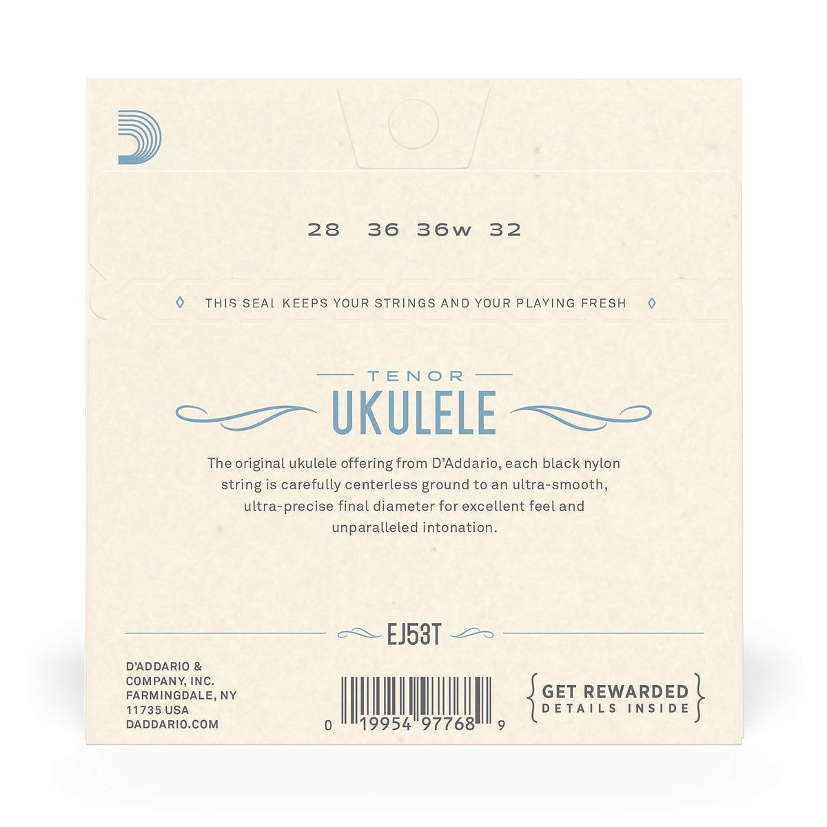 Daddario Ej53T Sets Are Designed For Use With Hawaiian Tenor Ukuleles. The 3Rd String Is A Wound Aluminum String Complimented By A 1St, 2Nd And 4Th Unwound String Made From Our Warmest Sounding Black Nylon. This Set Is Optimized For Standard Gcea Tuning. The Original Ukulele Offering From Daddario, Each Black Nylon String Is Carefully Center-Less Ground To An Ultra-Smooth, Ultra-Precise Final Diameter For Excellent Feel And Unparalleled Intonation With A Warm, Long Lasting Acoustic Tone.