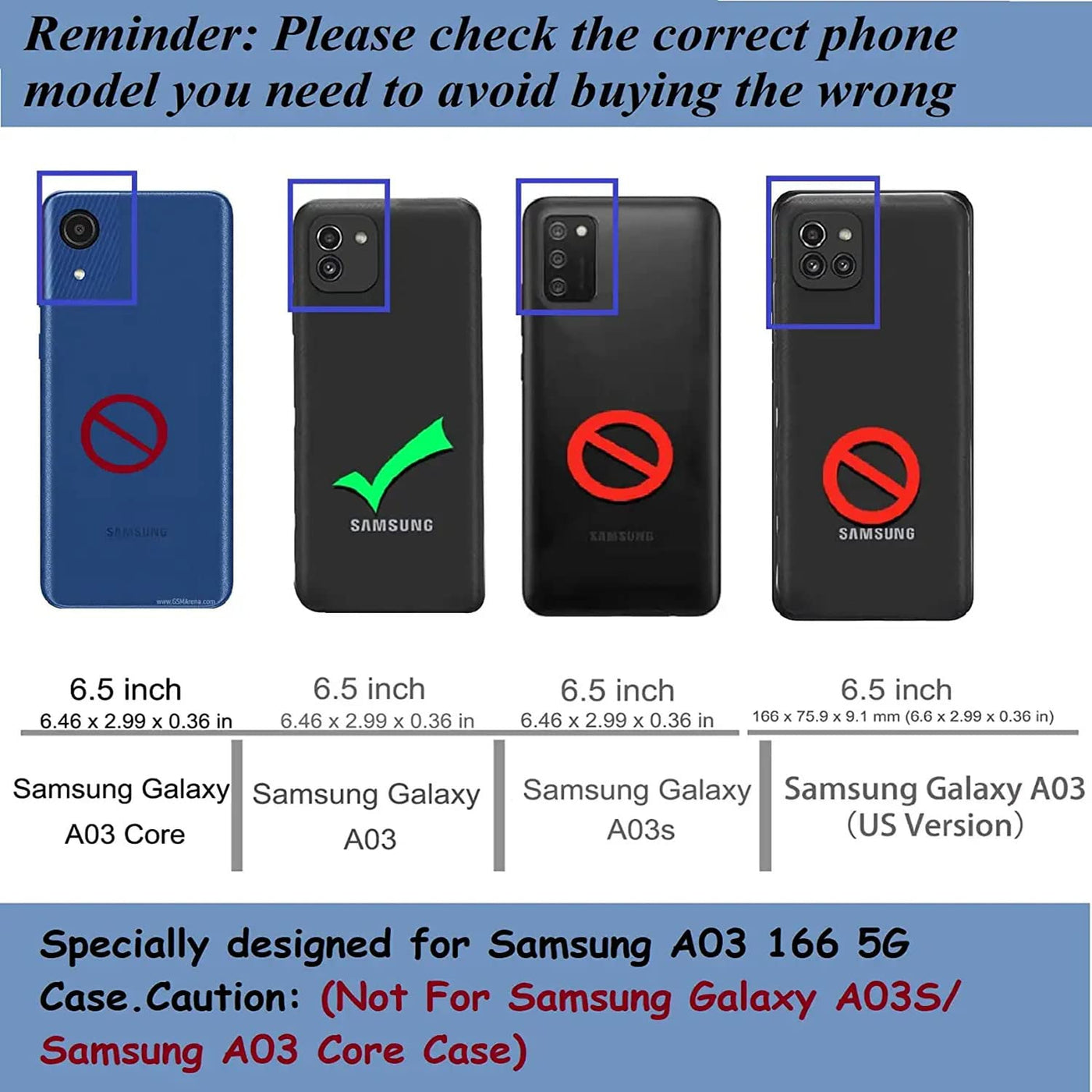 ?Compatible Model?Samsung Galaxy A03 6.5Inch, Not Fit Galaxy A03S & Galaxy A03 Core | ?Durable Material?Dual Layers Of Shockproof Tpu And Solid Pc For Double Protection. Protect Your Smart Galaxy A03 From Accidental Drops, Dust Or Scratches. | ?Rotatable Ring Holder?Metal Ring Kickstand Can Rotate 360