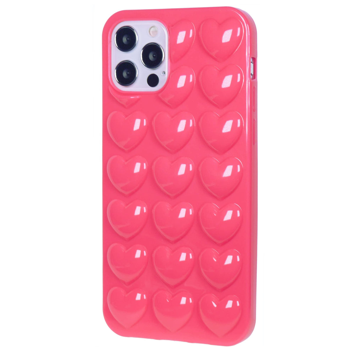 Dmaos Iphone 12 Mini Case For Women, 3D Pop Bubble Heart Kawaii Gel Cover, Cute Girly For Iphone12 Mini 5.4 Inch - Hot Pink