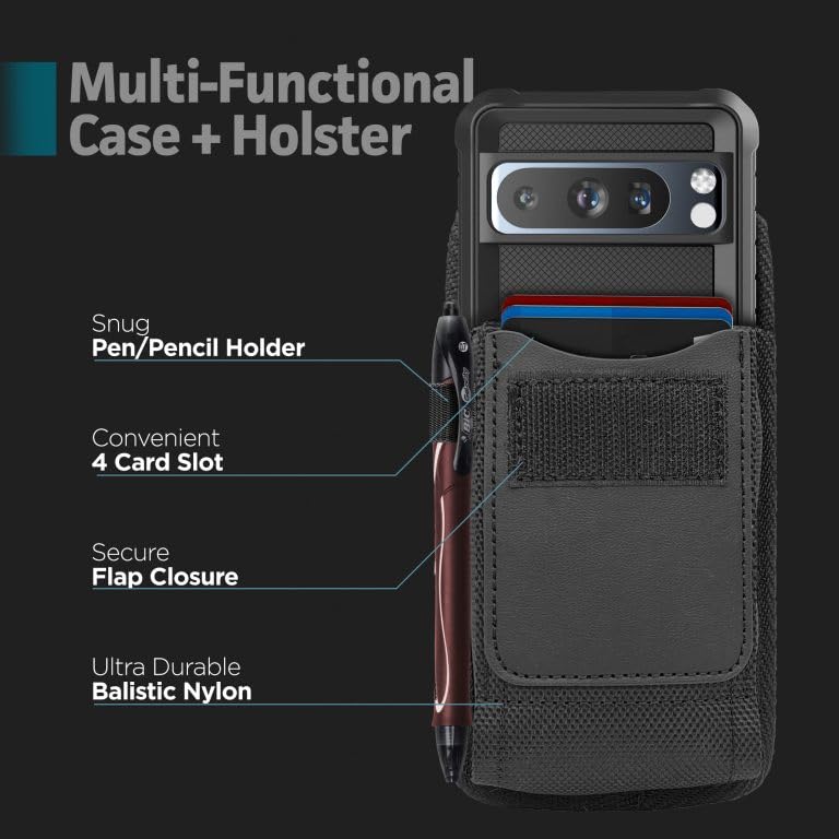 Falcon Case - Pixel 8 Pro A Rugged Case, Built With Attention To Detail. The Redesigned Falcon Is Here For The Pixel 8 Pro... And Better Than Ever. Wrapping Heavy-Duty Drop Protection In A Convenient Pouch Makes This Perfect For Everyday Use. Military Grade Engineered To Protect At All Costs. The Falcon Series Is Built To Exceed Tough Military Impact Standards And Has Been 10Ft Impact Tested And Certified To Provide You Peace Of Mind When You Need It Most. With Its Strong Scratch-Proof Housing And Shock Absorbing Lining, The Case Effectively Diffuses Shock Energy Away From Your Device Before It Causes Damage. In Addition The Falcon Case Features A Ids (Impact Dispersion System) And Raised Upper Lip Above The Screen To Ensure The Device Remains Completely Unharmed In The Event Of An Impact. Durable Nylon Pouch This Convenient Pouch Is Made Of Ultra Durable 1680D Ballistic Nylon That Will Stand Up To Years Of Wear And Tear, With A Soft Brushed-Felt Lining That Treats Your Phone And Screen To A Safe, Scratch-Free Enclosure. A Metal Belt Clip + Double Canvas Loops Provide Belt Options For Both Vertical/Horizontal Use. An Additional O-Ring Clip Point Is Great For Use With Backpacks, Bags And Neck Straps. Ergonomic Design We Designed The Falcon Case With A Reasonably Slim Profile To Retain The Phones Slim Shape Making It Both Comfortable And Easy To Hold. Flaunt Great Style And Military Grade Protection With A New Falcon Case. Key Features: ? Rugged All-In-One Protection With An Impact-Resistant Tpu Body ? Precise Port Cutouts For Easy Access To All Functions, Ports, And Controls ? Easy-Push Buttons Retain The Phones Responsive Button Click &Amp; Feel ? Convenient Built-In Credit Card Pocket Securely Stores Up To 5 Cards And Ids ? Secure Closure Ensures Device Security While Preventing Accidents Typical With Magnetic Latches ? Built To Take Abuse. The Falcon Case Is The One You Need When Protection Is Your #1 Priority Experience The Encased Difference Today.