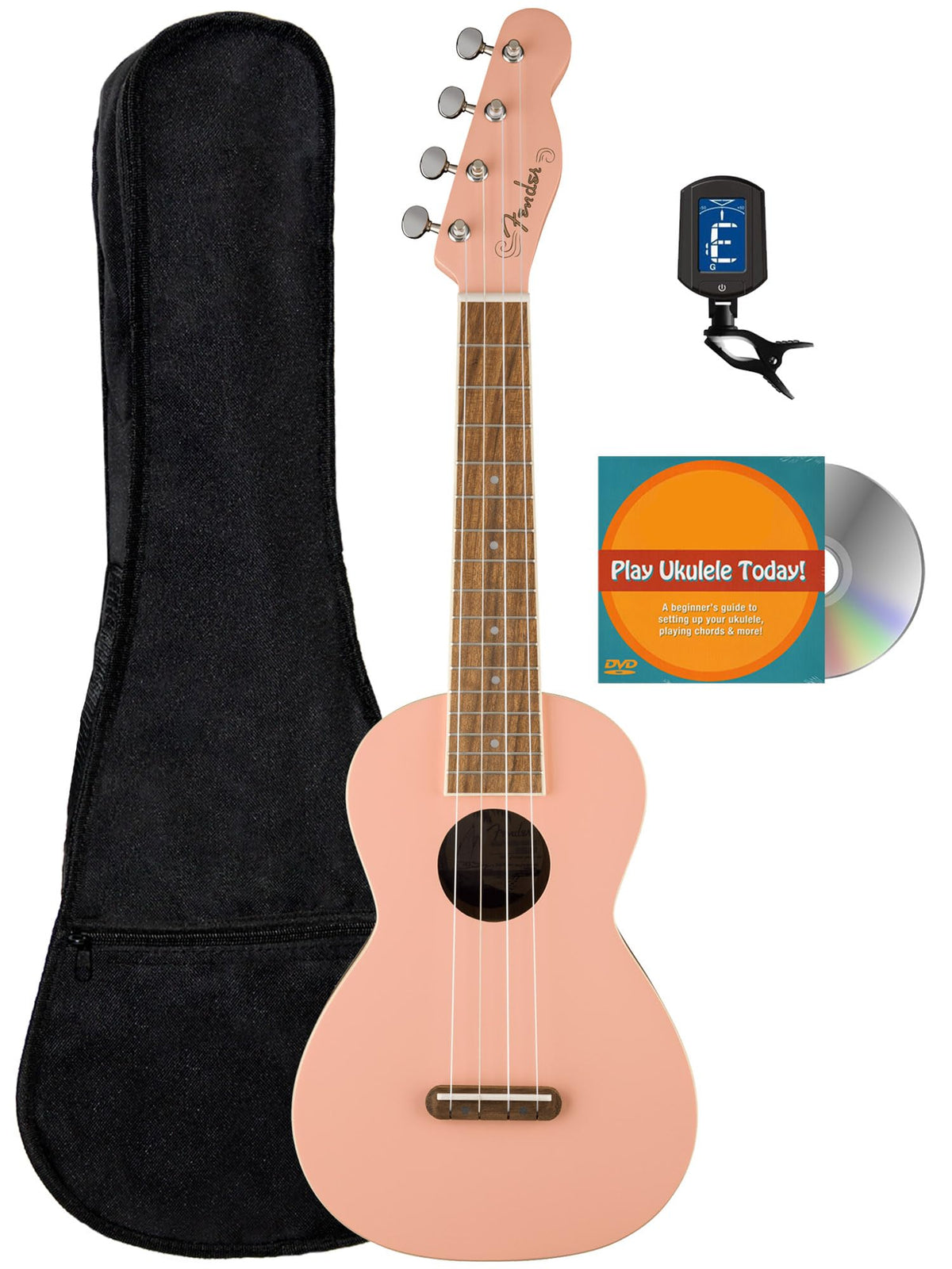 Fender Monterey Concert Ukulele - Shell Pink Bundle With Gig Bag, Tuner, And Austin Bazaar Instructional Dvd