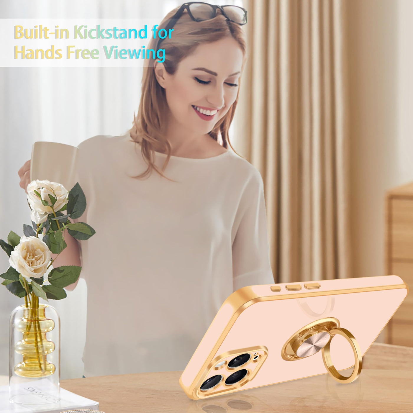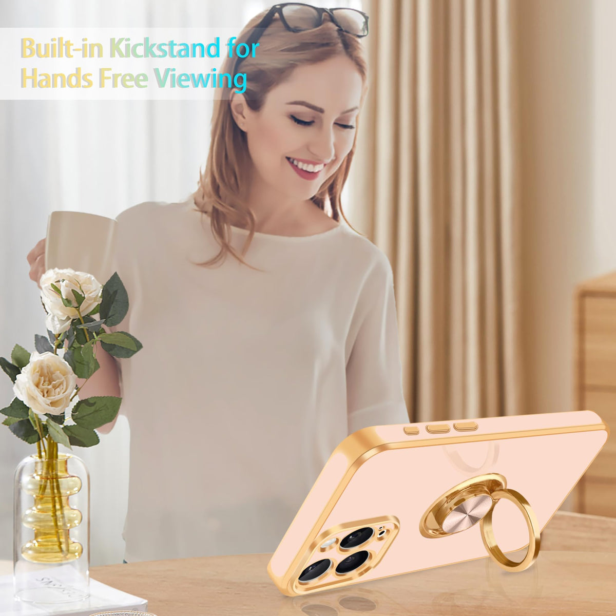 Fingic For Iphone 15 Pro Phone Case[With 360 Ring Holder][Support Magnetic Car Mount] Cute Kickstand Slim For Women Nonslip Soft