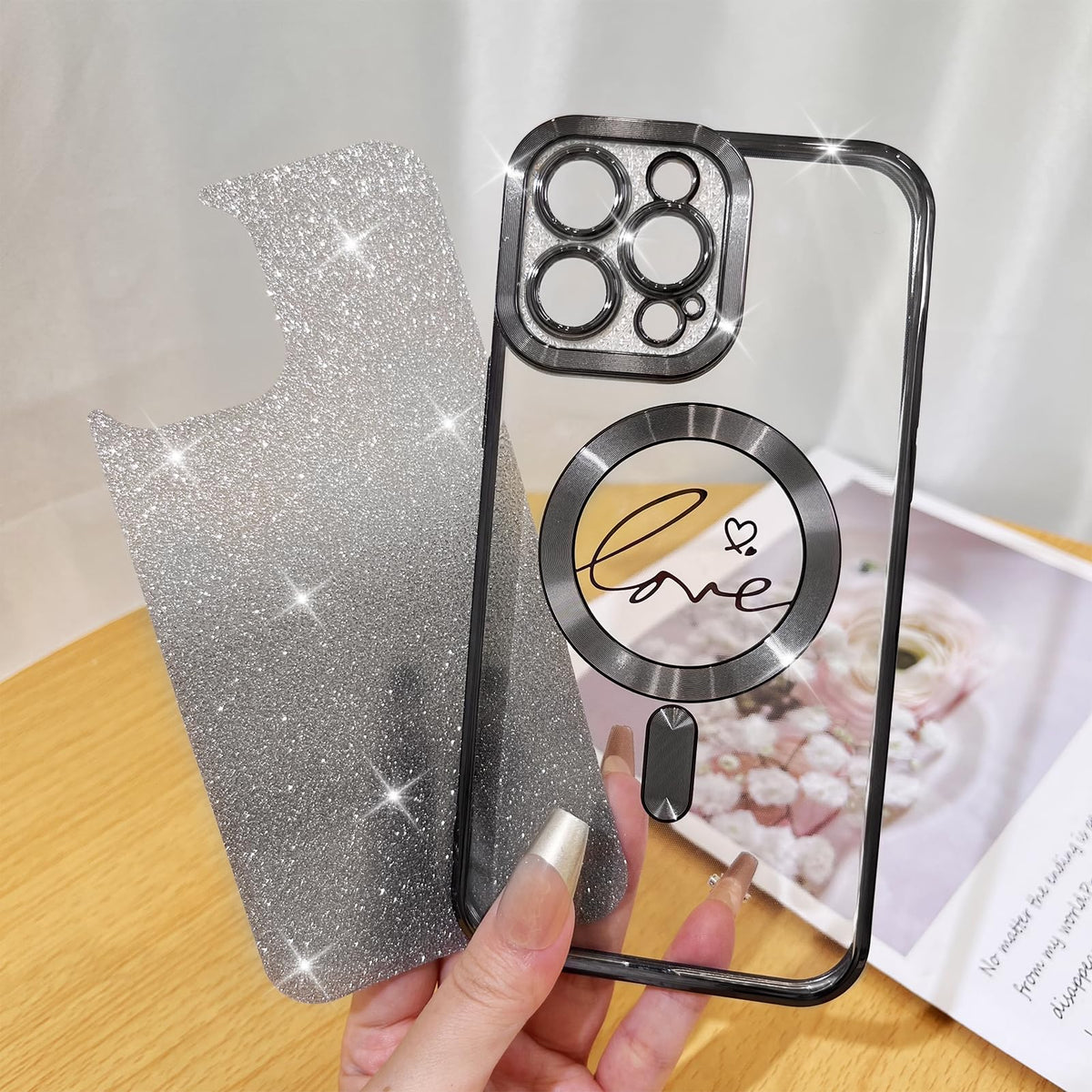 Fiyart Compatible With Iphone 12 Pro Case ,Compatible With Magsafe Love Heart Plating Camera Protection Clear Phone Case, Magnetic Glitter For Women Girls Shockproof Back Bumper 6.1''-Black Features: Compatible With Wireless Charging. Electroplated Love Design:New Upgraded Durable Printing Technology Makes Your Phone Different And Eyes. Keep The Back And Side Of Your Device From Scratches, Scrapes And Fingerprints And Yet Durable & Lightweight Case. Good Gifts For Women Girls Men. Package Includes: 1X Case Cover For Iphone 12 Pro