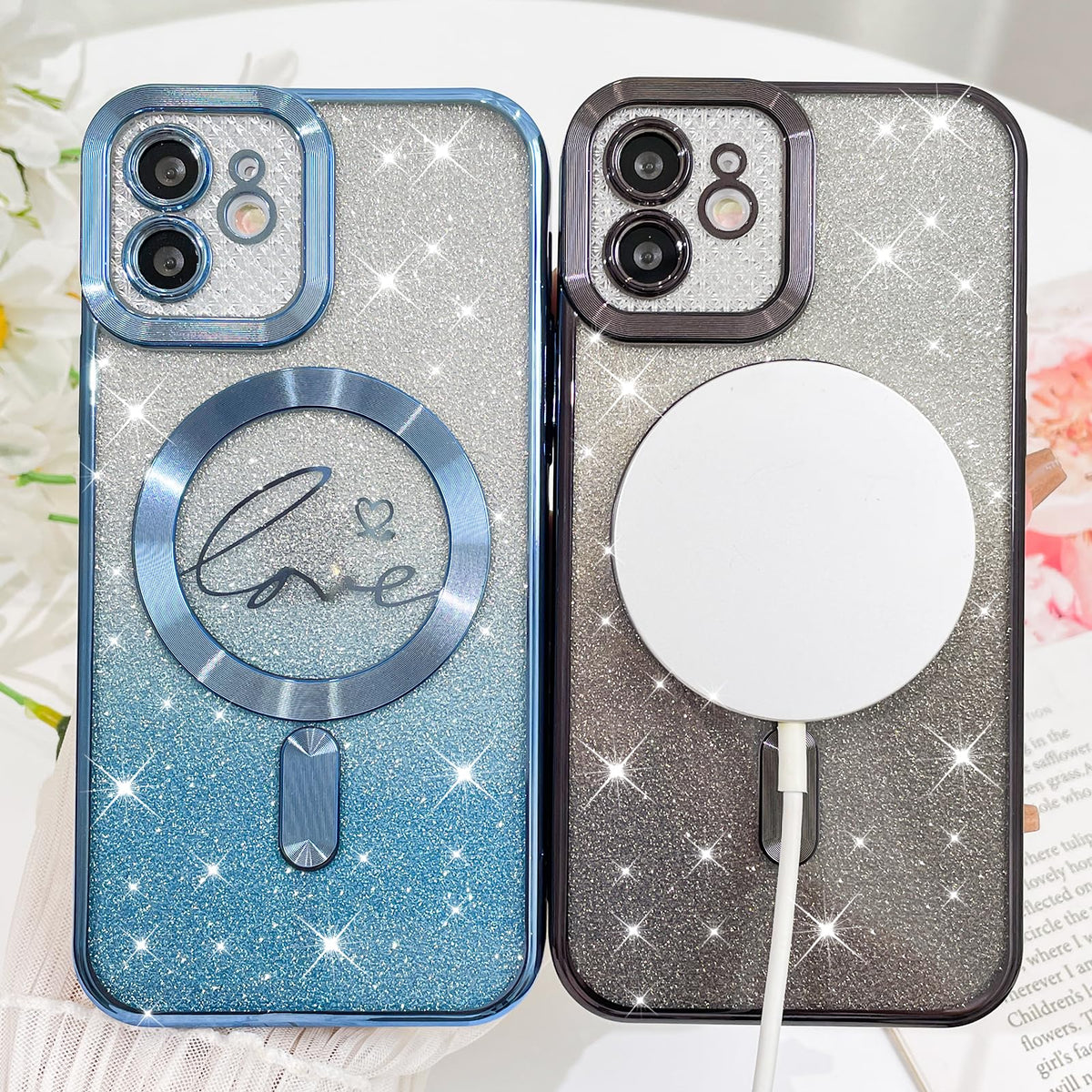 Fiyart Designed For Iphone 11 Case,Compatible With Magsafe Love Heart Plating Camera Protection Clear Phone Case, Magnetic Glitt