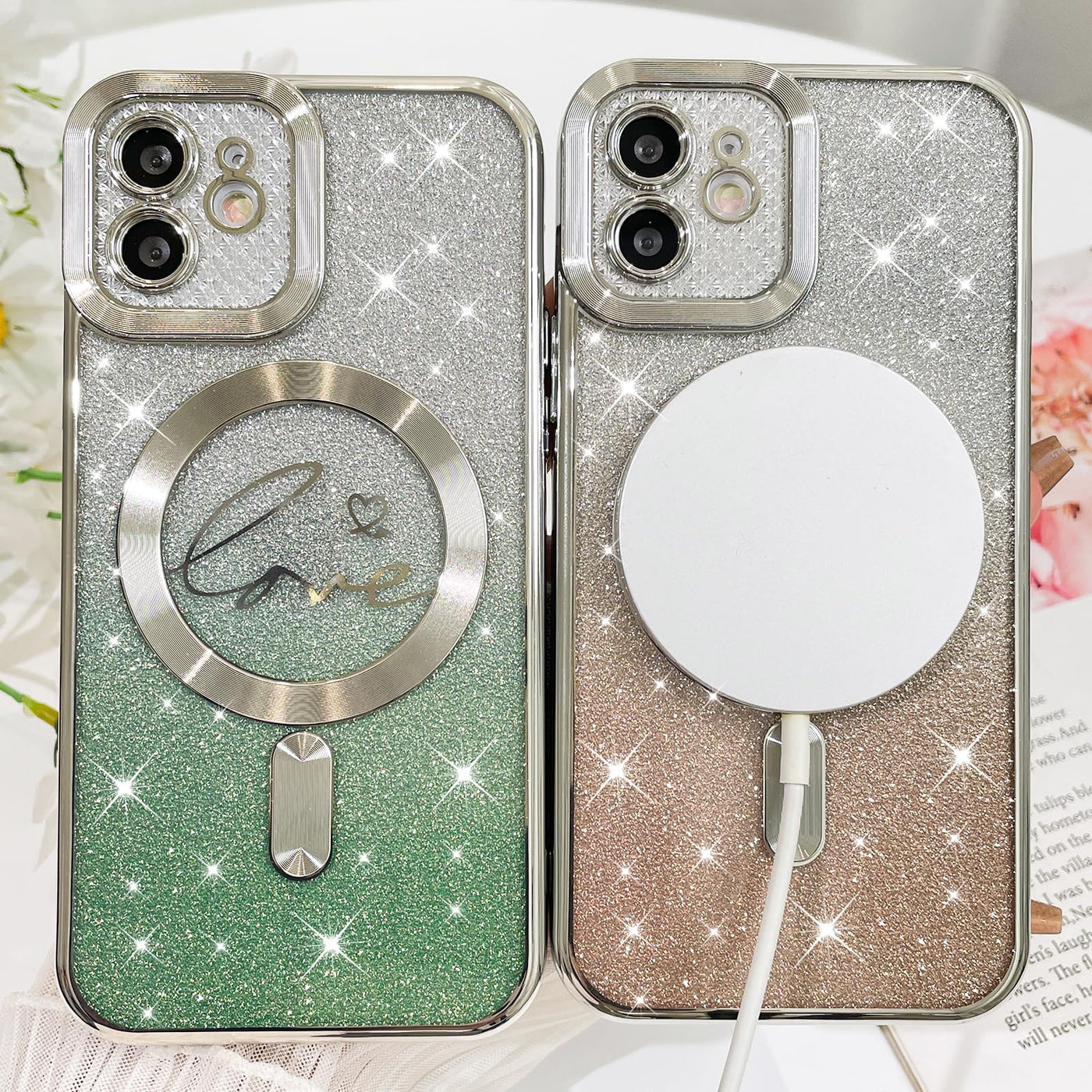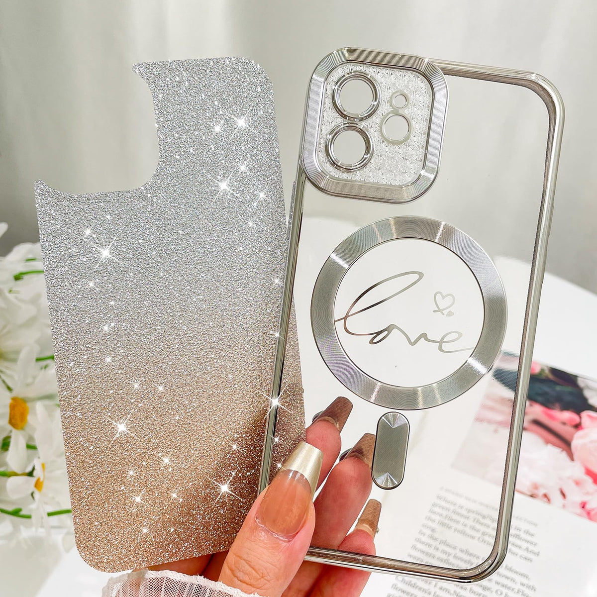 Fiyart Compatible With Iphone 12 Case ,Compatible With Magsafe Love Heart Plating Camera Protection Clear Phone Case, Magnetic Glitter For Women Girls Shockproof Back Bumper 6.1''-Silver Features: Compatible With Wireless Charging. Electroplated Love Design:New Upgraded Durable Printing Technology Makes Your Phone Different And Eyes. Keep The Back And Side Of Your Device From Scratches, Scrapes And Fingerprints And Yet Durable & Lightweight Case. Good Choices For Women Girls Men. Package Includes: 1X Case Cover For Iphone 12