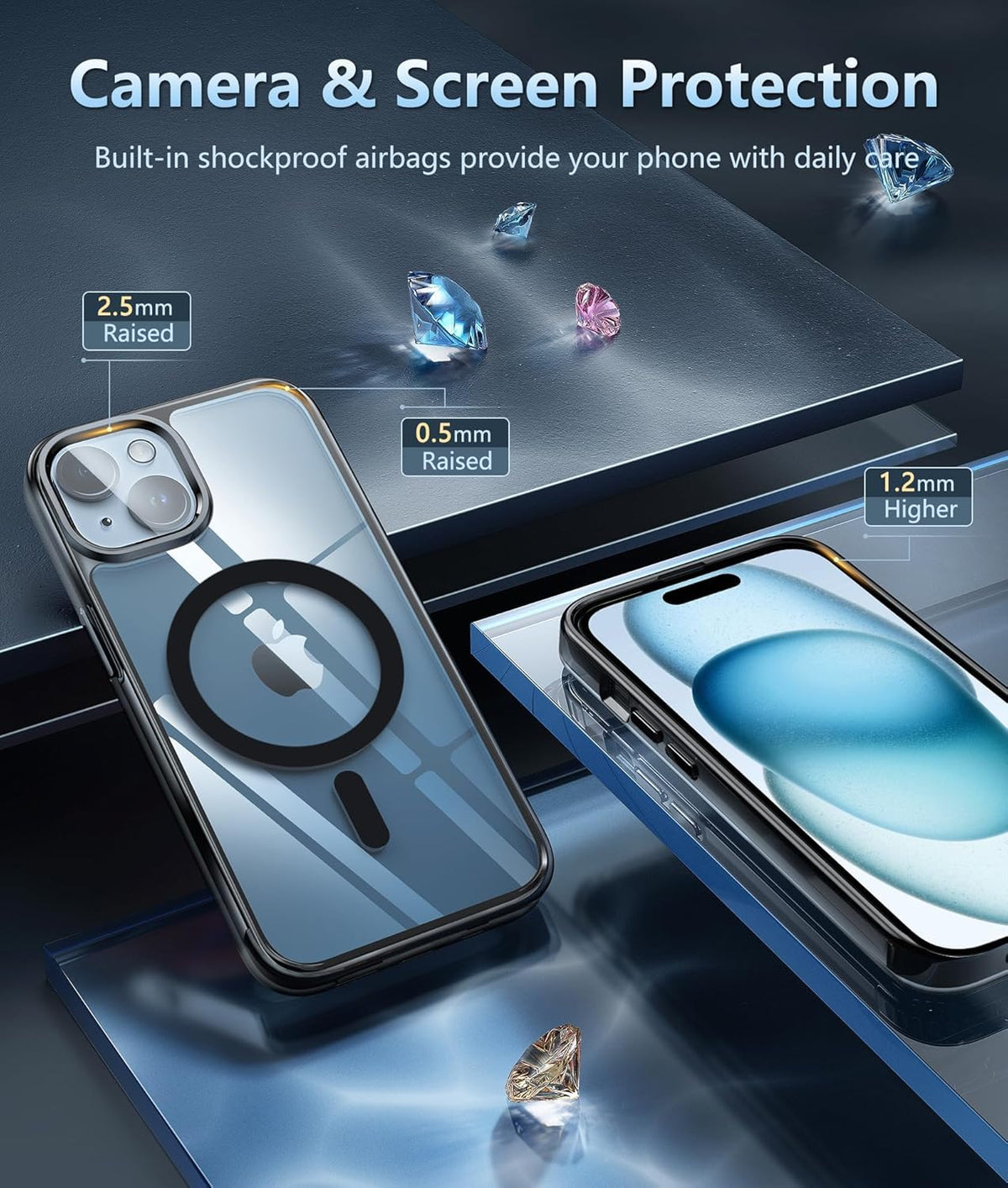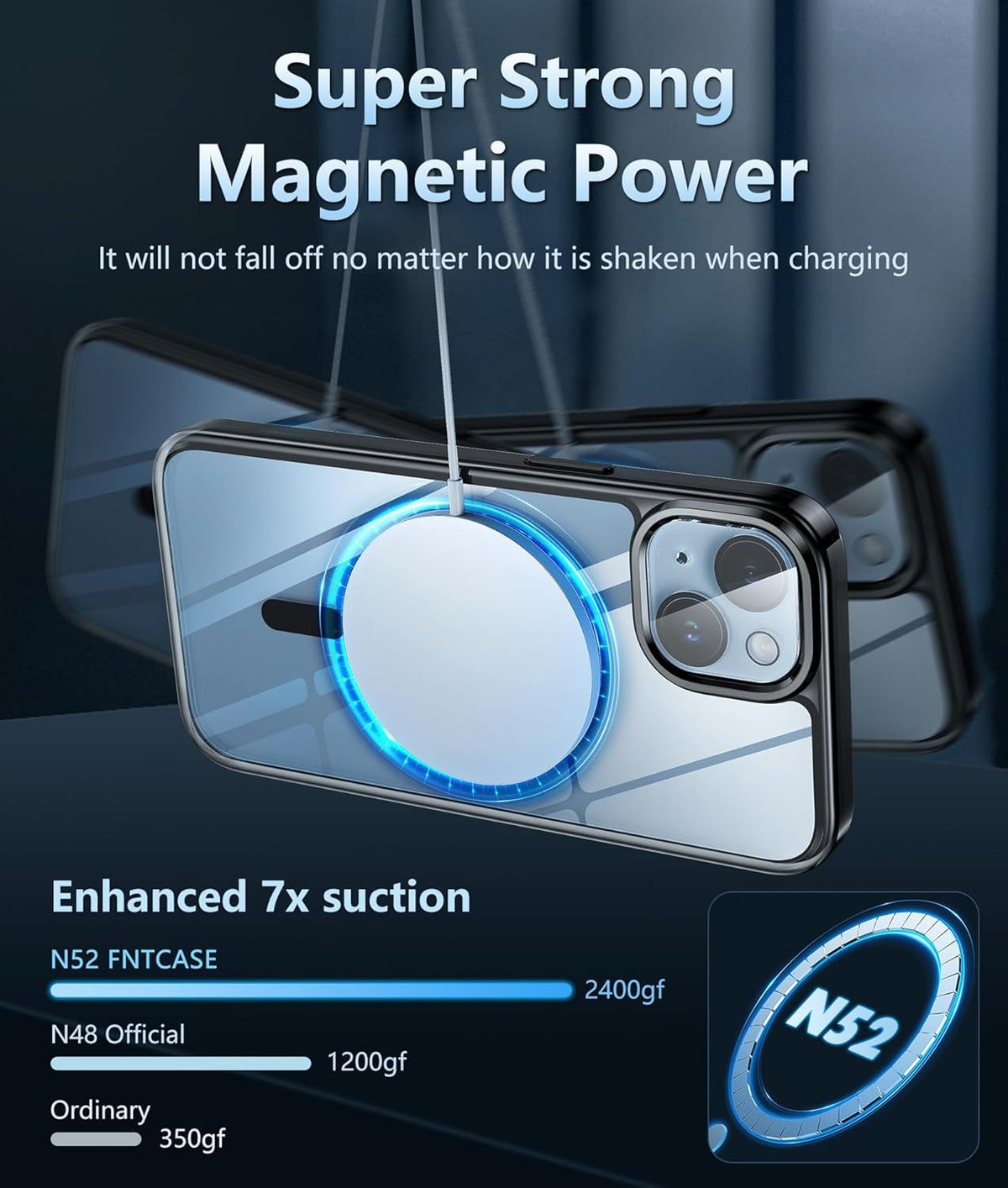 Fntcase For Iphone 15 Plus Phone Case: Magnetic Clear Military Grade Shockproof Anti Yellowing Slim Phone Cover, Protective Rugg