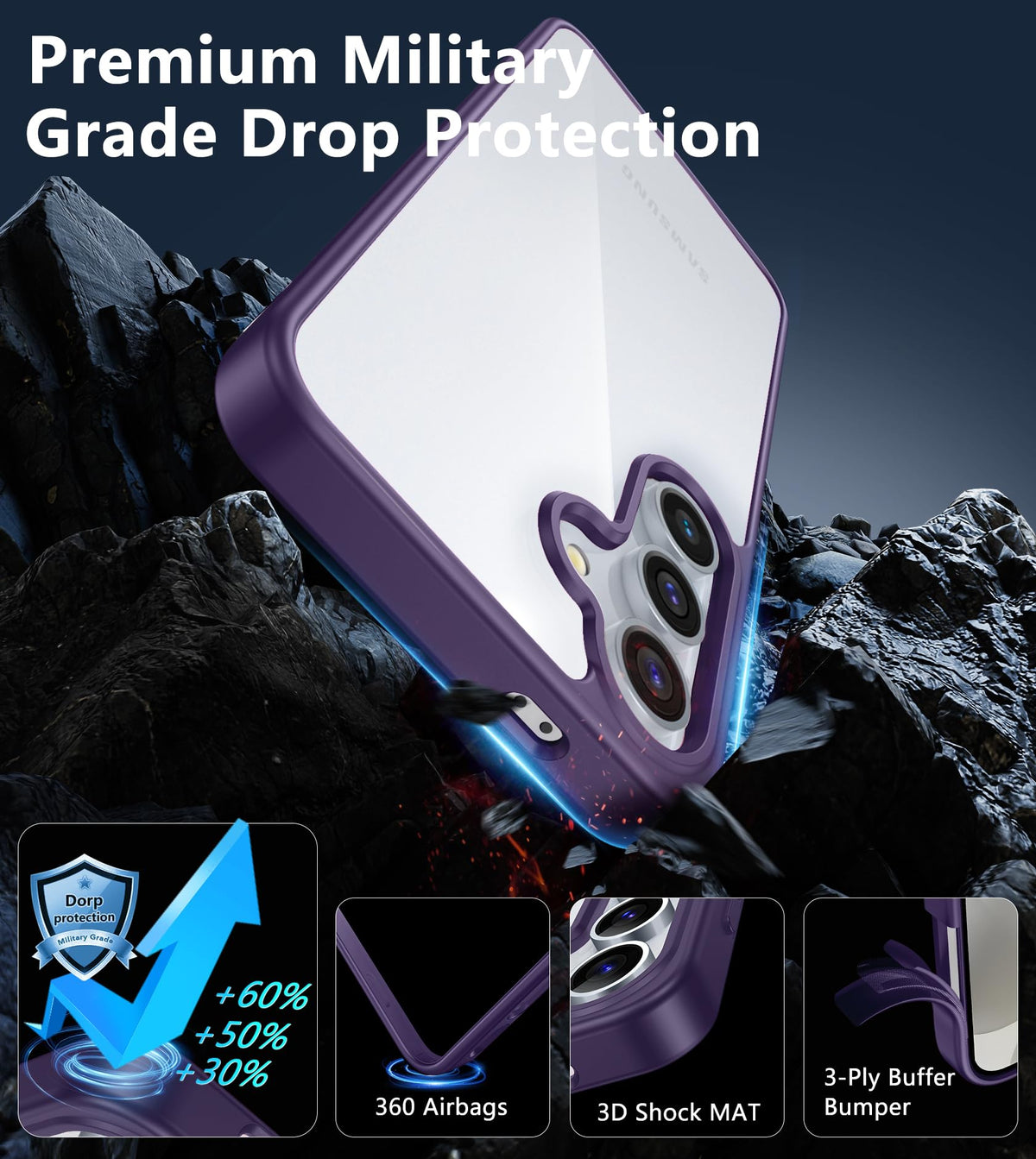 Q: What kind of protection does this case offer against drops?A: The FNTCASE provides military-grade protection with built-in upgraded shockproof airbags located in the four corners of the case. This technology ensures excellent cushioning and impact resistance during accidental drops and bumps.