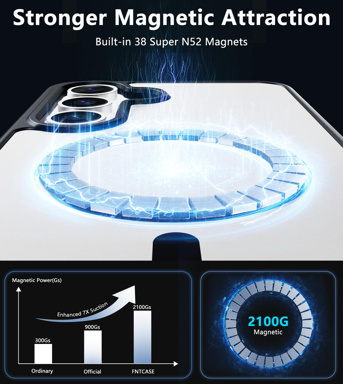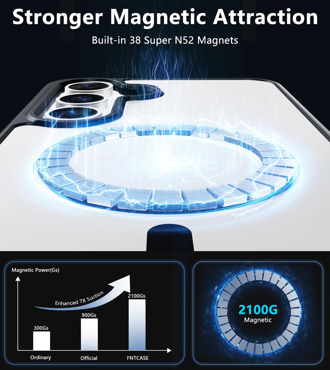 Q: Does the case support magnetic charging accessories?A: Yes, the FNTCASE features built-in powerful N52 magnets that allow for easy attachment of various magnetic charging accessories, including wireless chargers and battery packs.