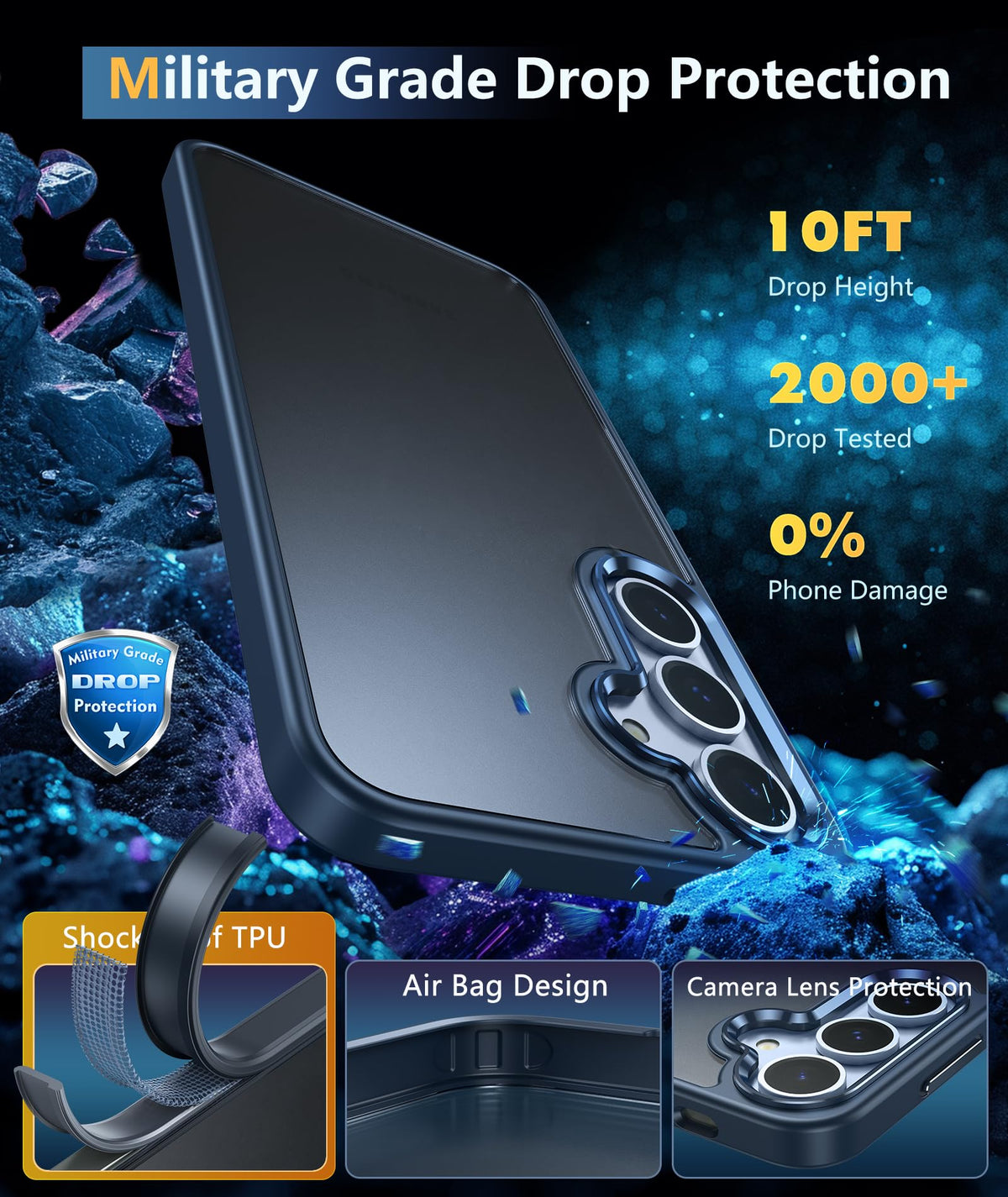 Q: What kind of protection does this case offer?A: The FNTCASE provides 10FT military-grade drop protection with a combination of rigid polycarbonate and shockproof TPU bumpers. It features built-in impact-absorbing airbags and four-corner reinforcement technology to protect your phone against drops, bumps, and scratches.