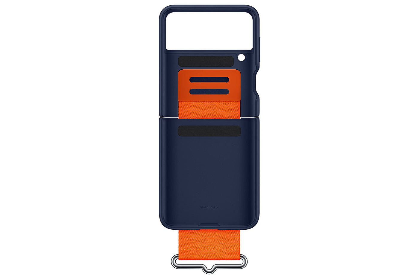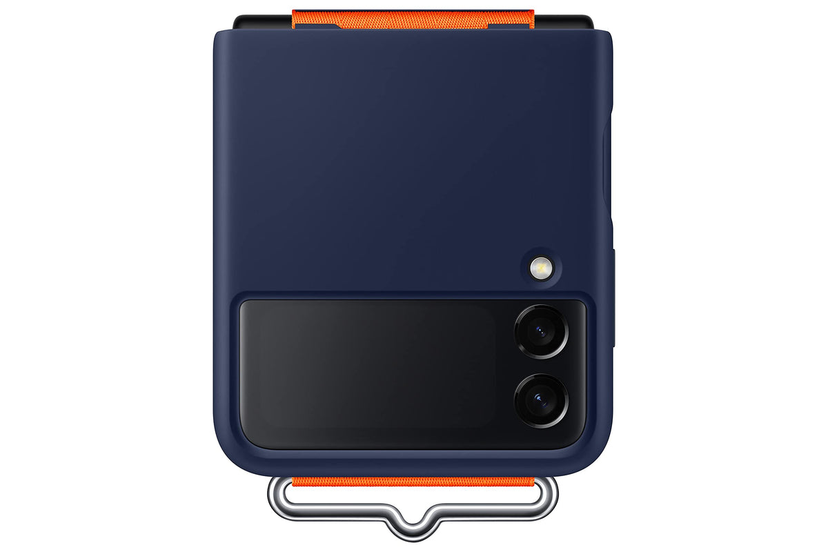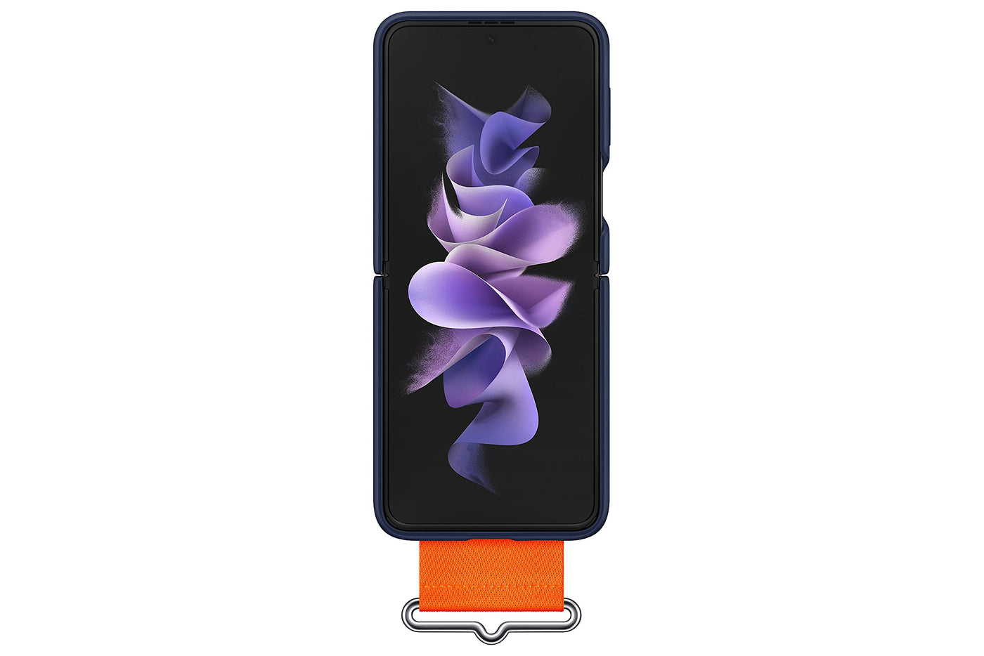 Galaxy Z Flip 3 Phone Case, Silicone Protective Cover With Strap, Heavy Duty, Shockproof Smartphone Protector, Us Version, Navy