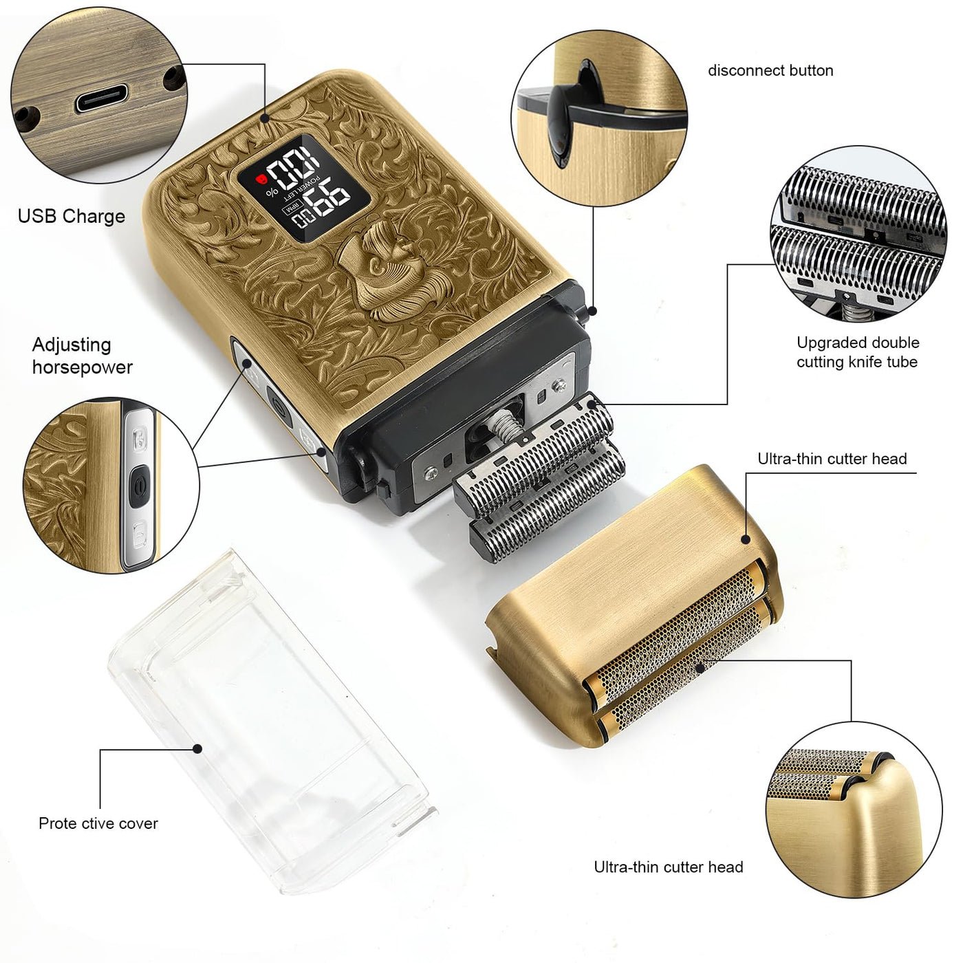 Q: What features does the smart LED display offer?A: The smart LED display on the GEC shaver provides real-time battery level information and indicates when the travel lock is engaged. This feature helps prevent accidental startup during transportation, enhancing convenience for users on the go.