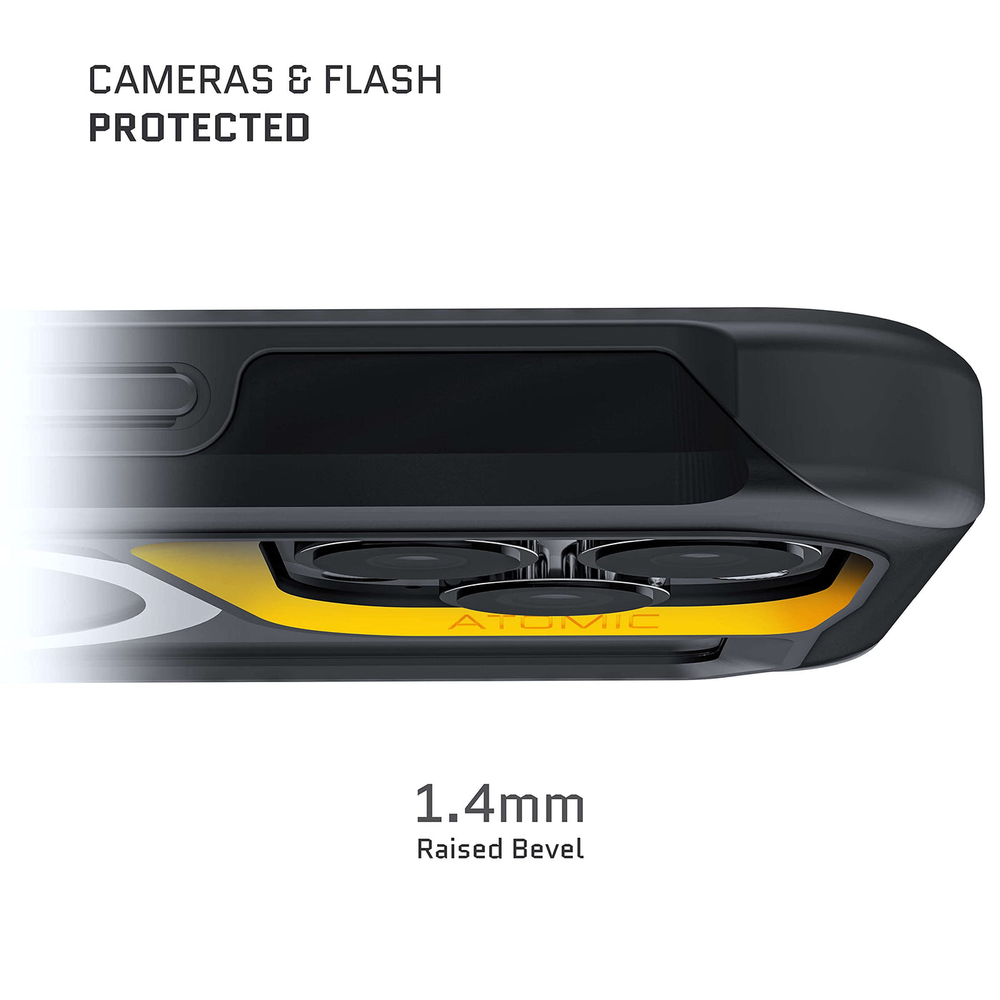 Q: Does the Ghostek ATOMIC case protect the camera and screen?A: Yes, the case features raised perimeter edges that provide additional protection for both the OLED screen display and the camera lens, preventing scratches and damage.