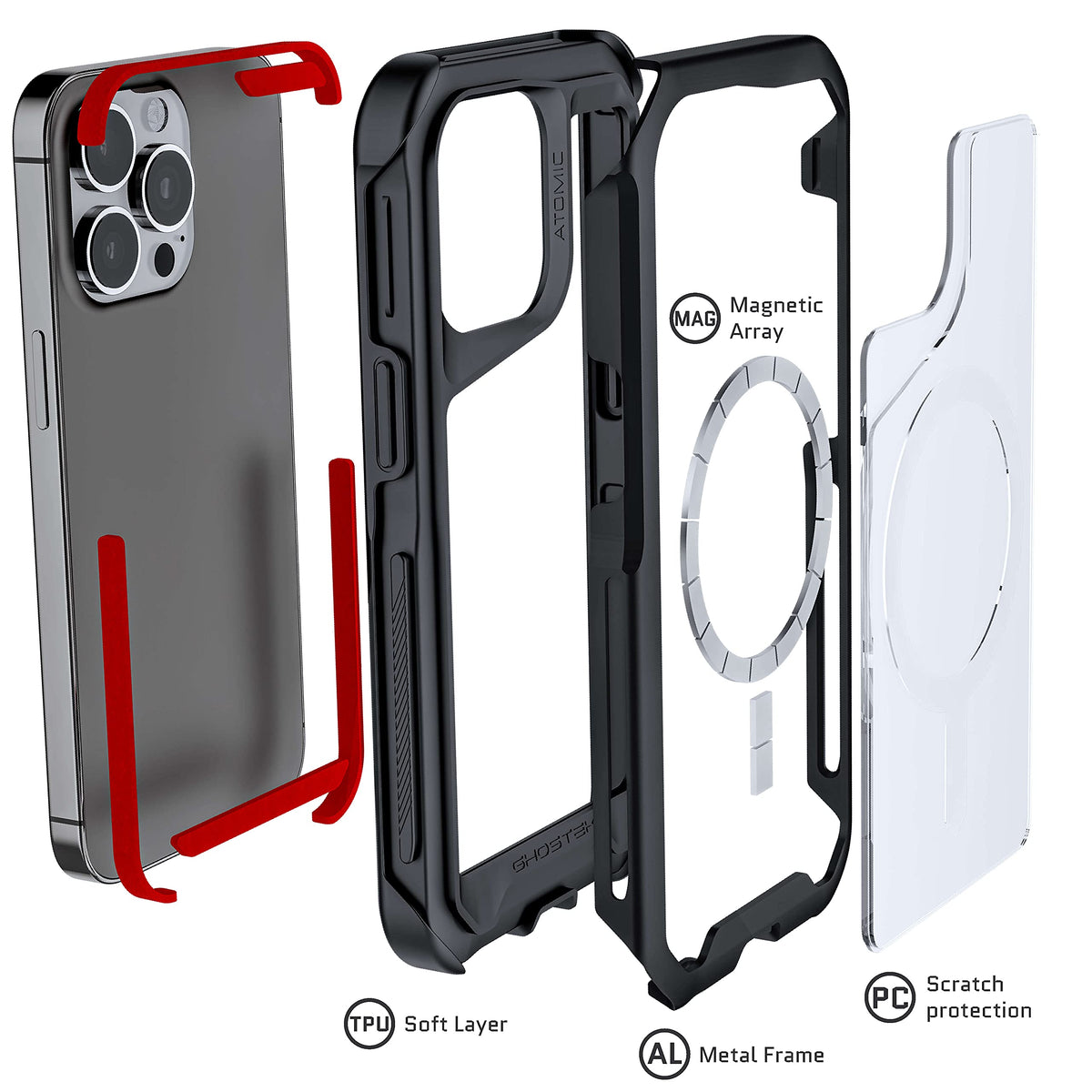 Ghostek Atomic Slim Iphone 13 Case Black With Magsafe Ring Magnet Crystal Clear Back Design Aluminum Metal Bumper Tough Shockpro